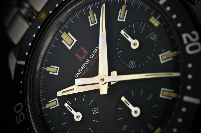·Its always a very satisfying feeling when a project comes together especially when there always seems to be “in progress” projects all over the place. This one was no exception and I must thank George for helping me secure the watch, Lou for all his ongoing support and Dean for making two tiny components (pusher washers) that render the watch functional once and for all. In fact Dean's washers are far better than the original pair that came with a second Space Compax I have. I replaced the rubber pusher on both my examples with the ebay offering and as Lou warned, they are quite soft. However, with Dean’s washers the increased overall diameter and solid construction work perfectly turning this quirky design into something that works without the fear of damaging the rubber caps.