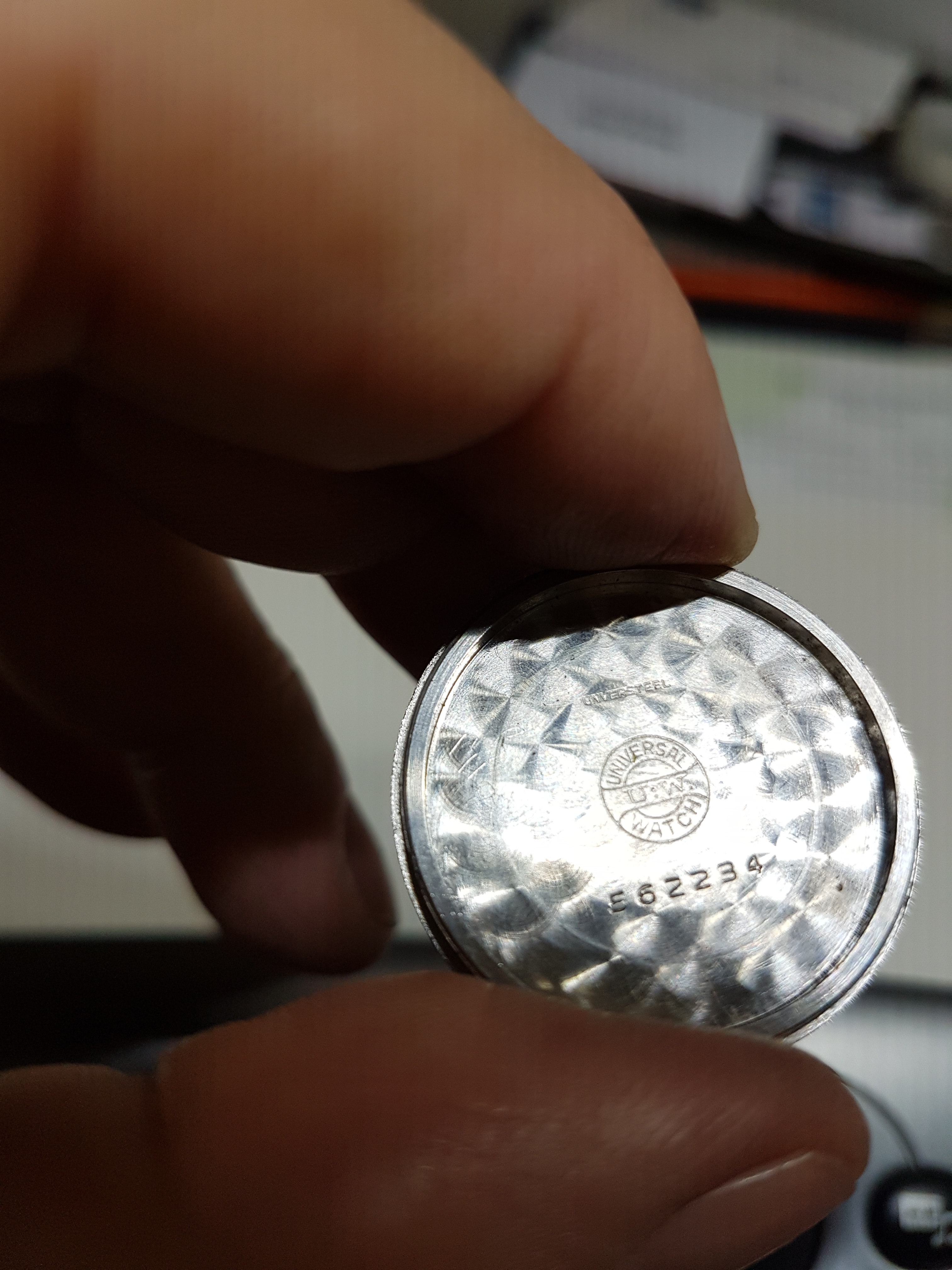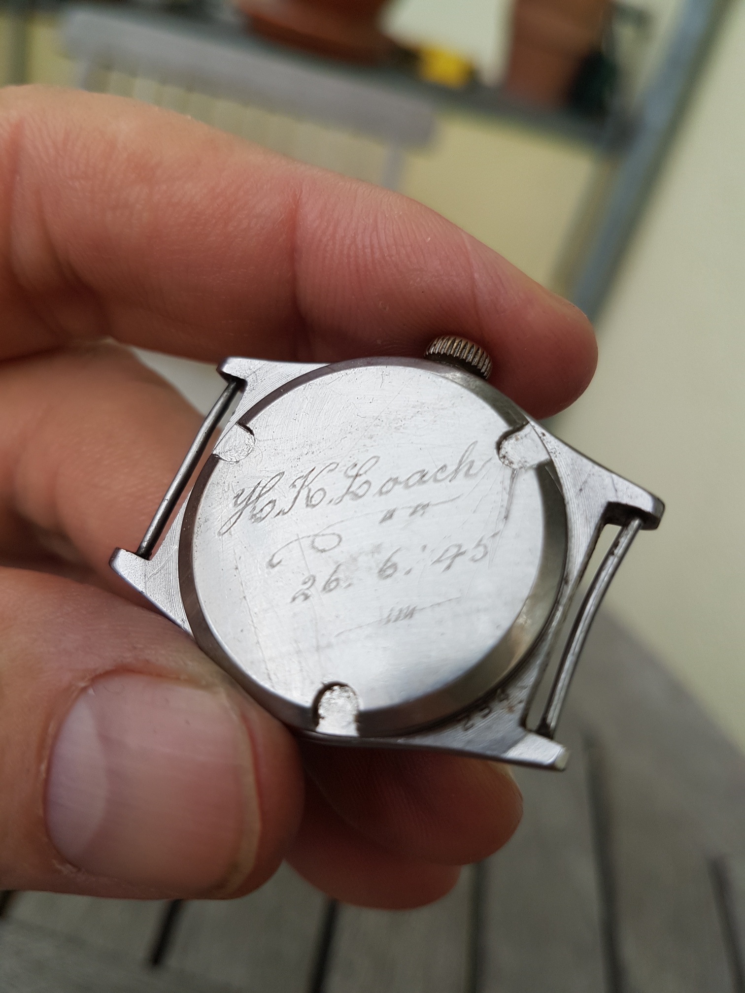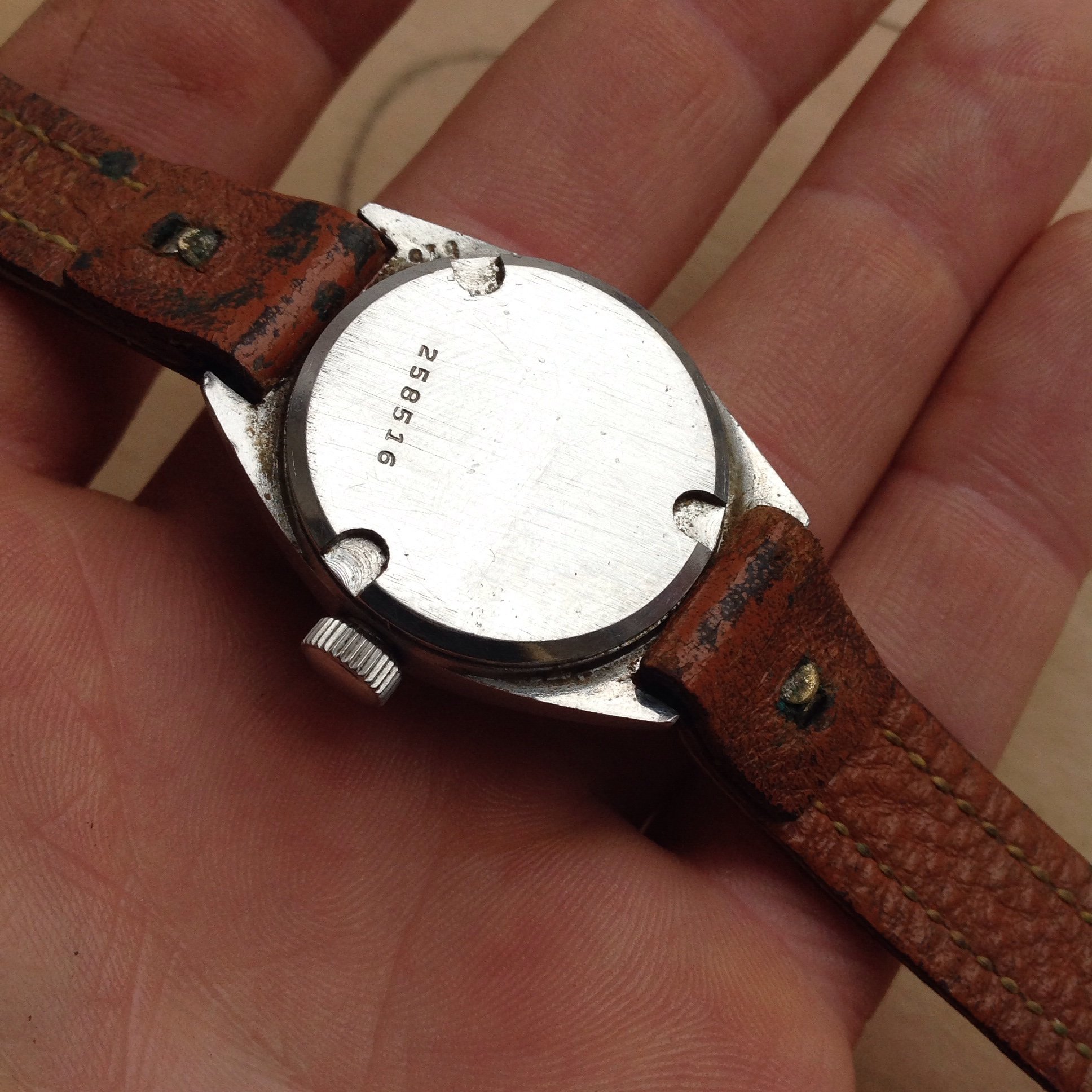Original dial with beautiful numerals (open 9) still under the rotten crystal, but I´m quite sure that it will look awesome with a new glass. Case design looks familiar, even if there are no crown guard and no beveld edges (anymore?).