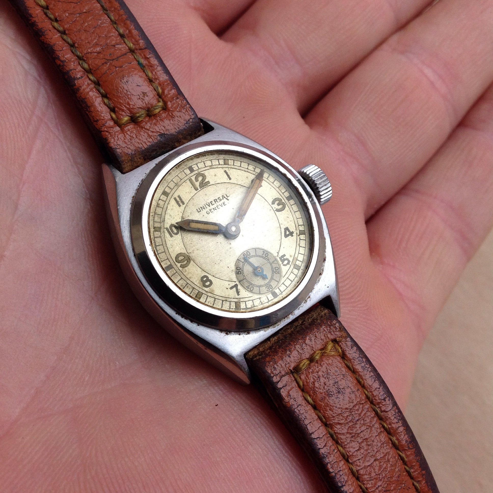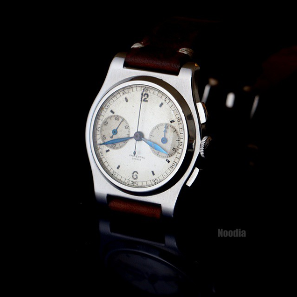 ·When it comes to Universal, one of the most admired watch by collectors is the Universal Colonial Chronograph (Cal. 285). Build only for a very short period of time, these watches fascinate with their "avantgarde" case design and beautiful dials.
