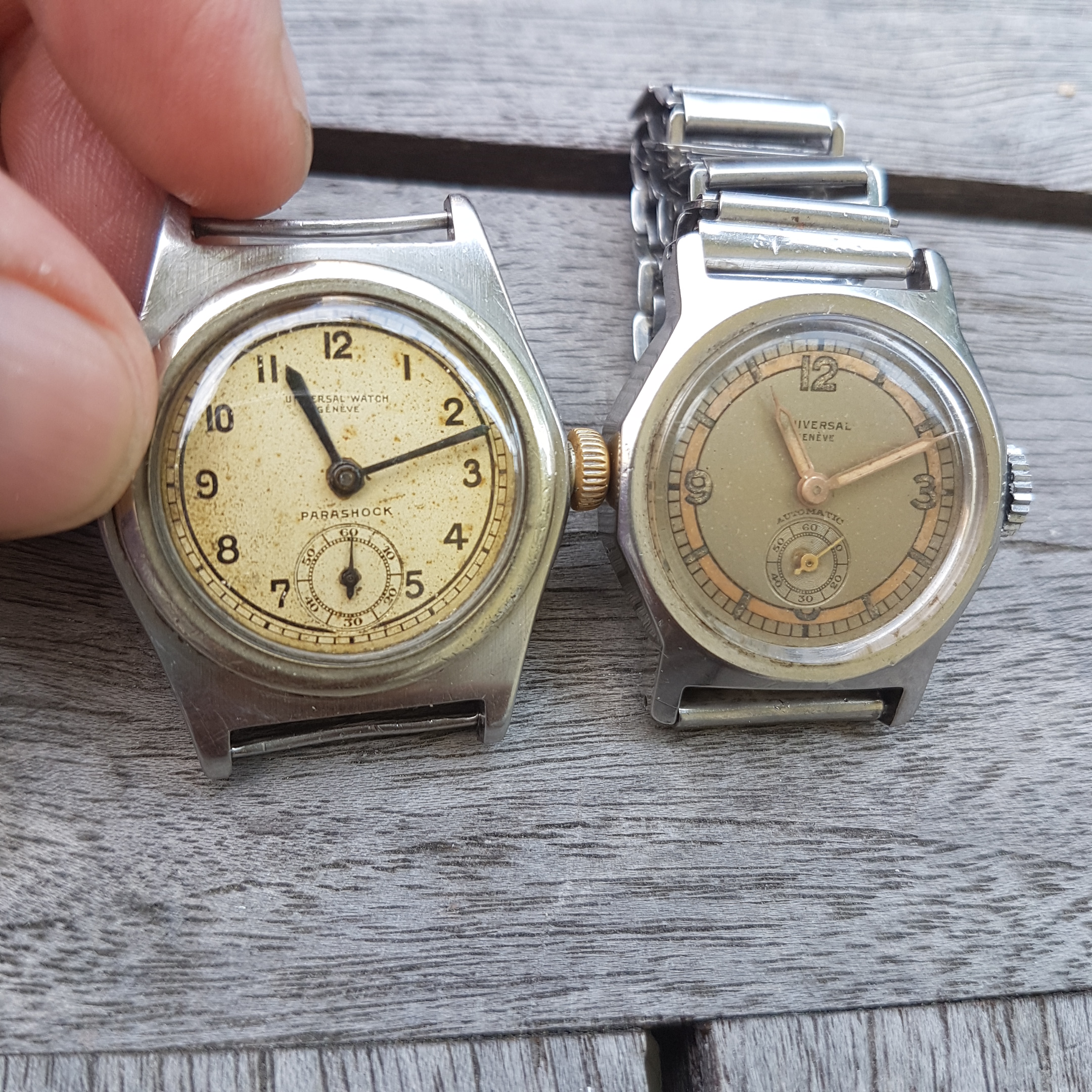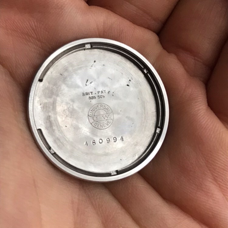 The tre tacche (handwound) is a little bit earlier (562xxx) and bigger, but right is one of the earliest automatic Universal watches I know (591xxx).
