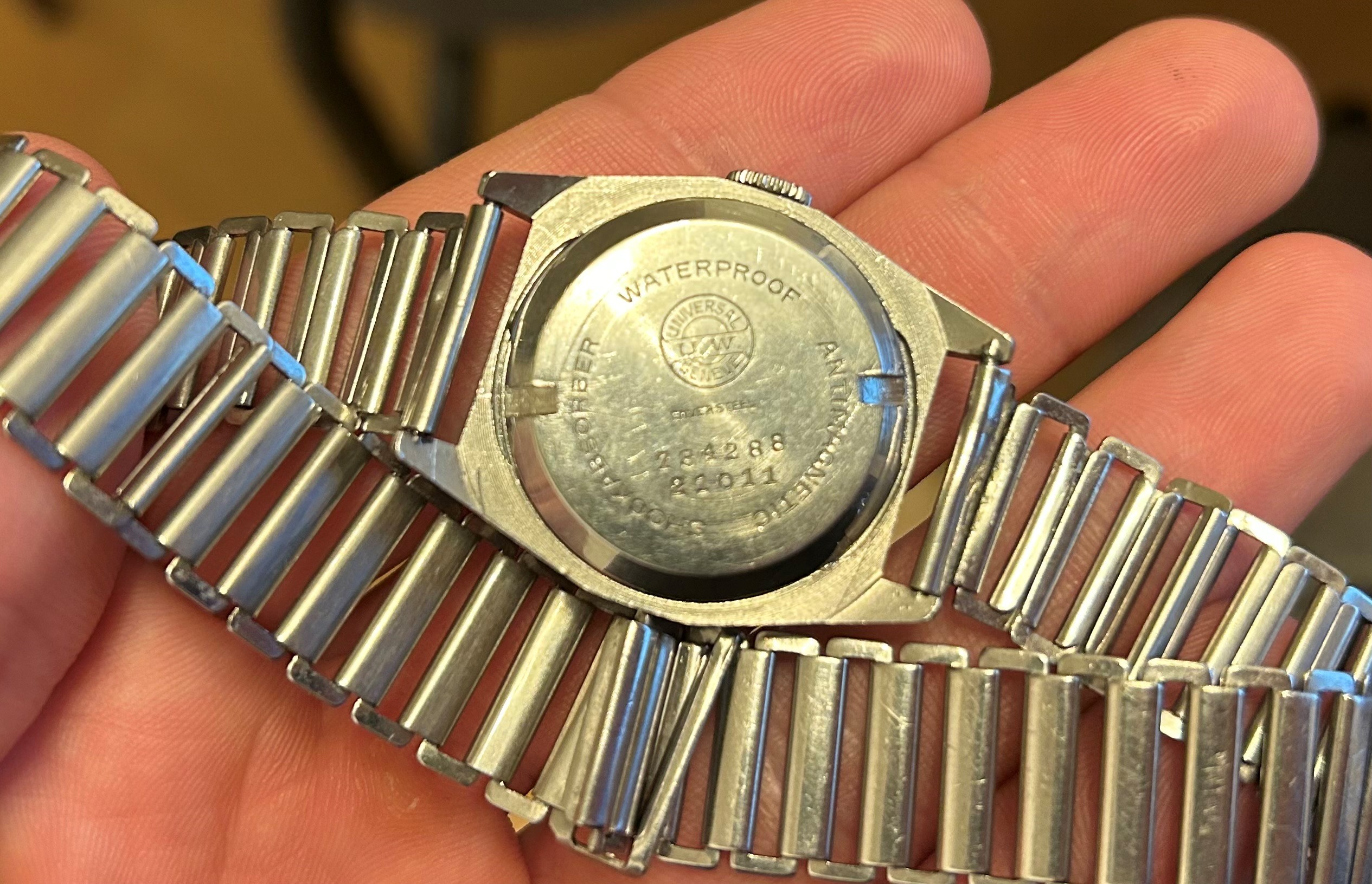 The serial places this piece to around 1939. The hulking case is in fine shape considering it is over 80 years old and was presumably no safe queen, particularly when evaluated alongside its original battered bonklip bracelet.
