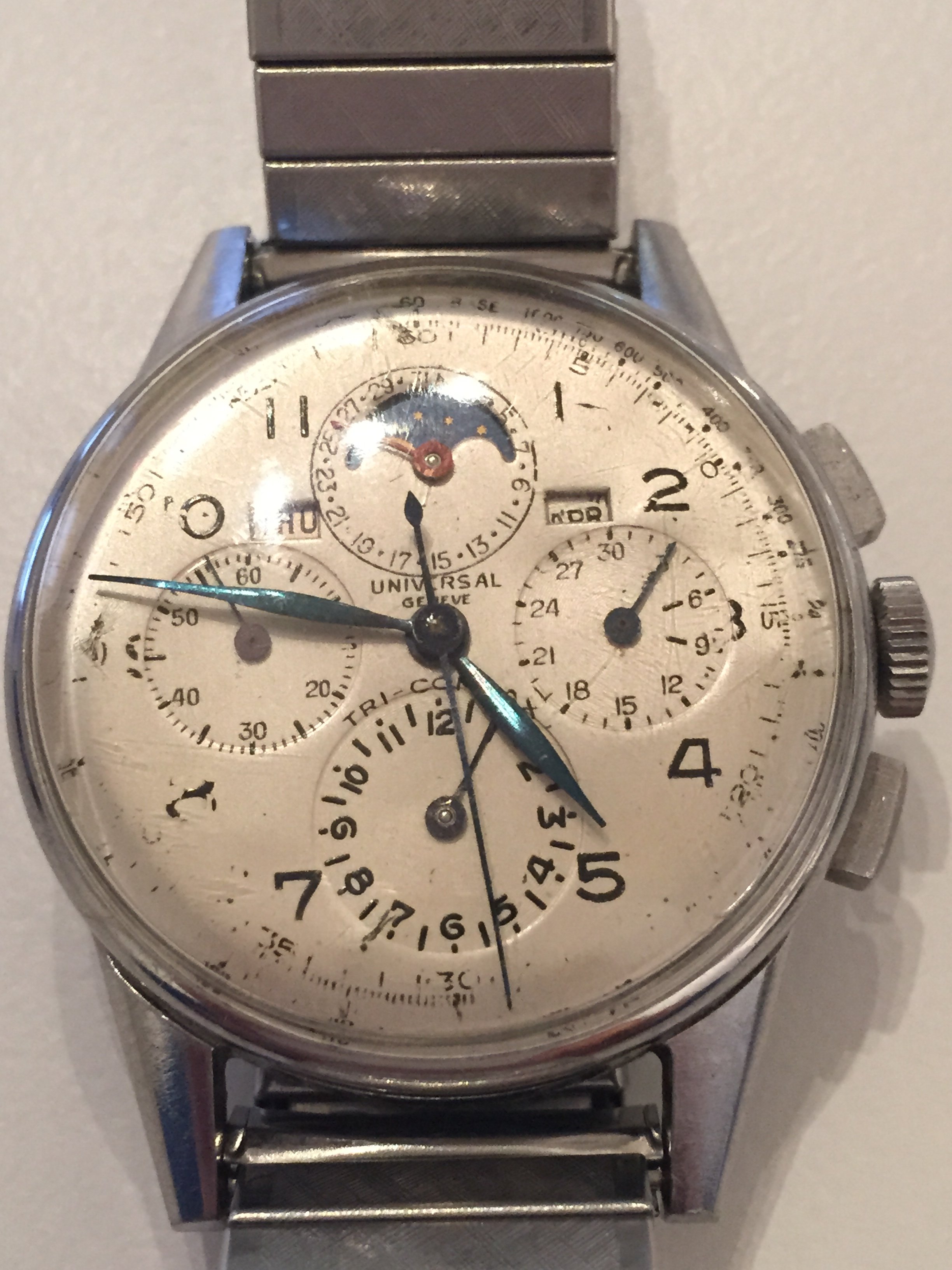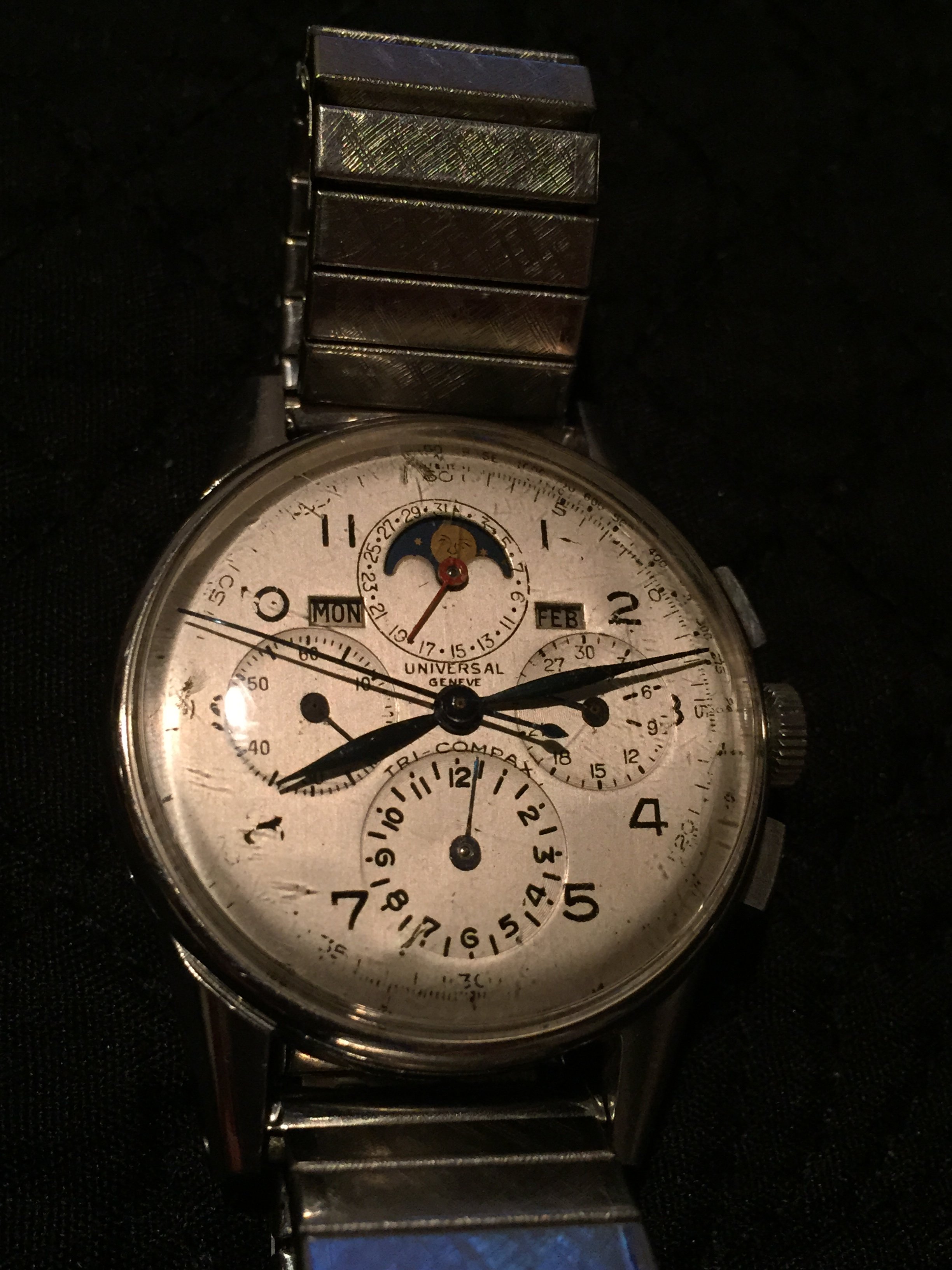 ·My father recently passed away, and after cleaning out some drawers I found this Universal Tri-Compax with Moonphase watch. Can you guys help me out to evaluate it in these regards: