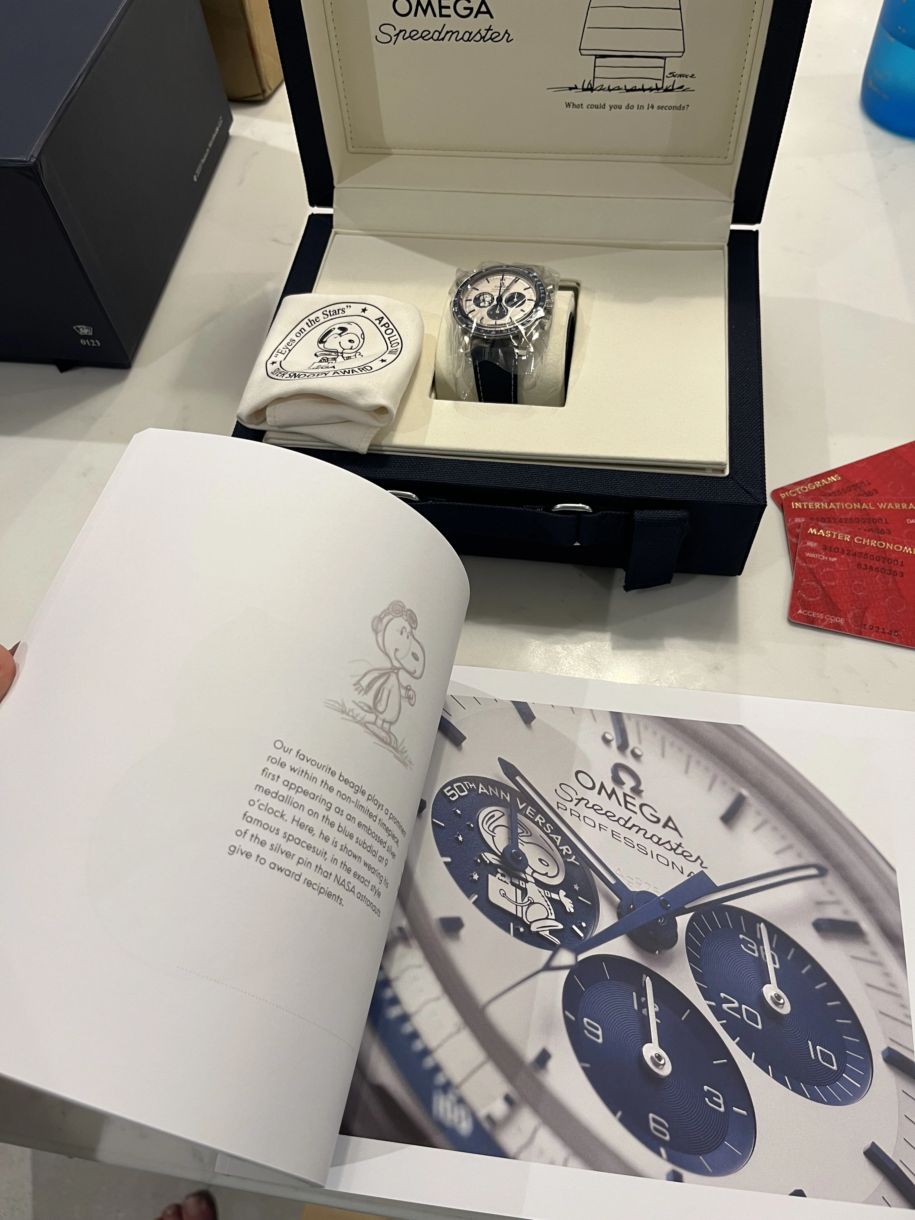 I’m selling my Omega Speedmaster Silver Snoopy. Never been worn, as new condition. Full set inc stickers, tags, warranty cards etc, even the outer cardboard box.
