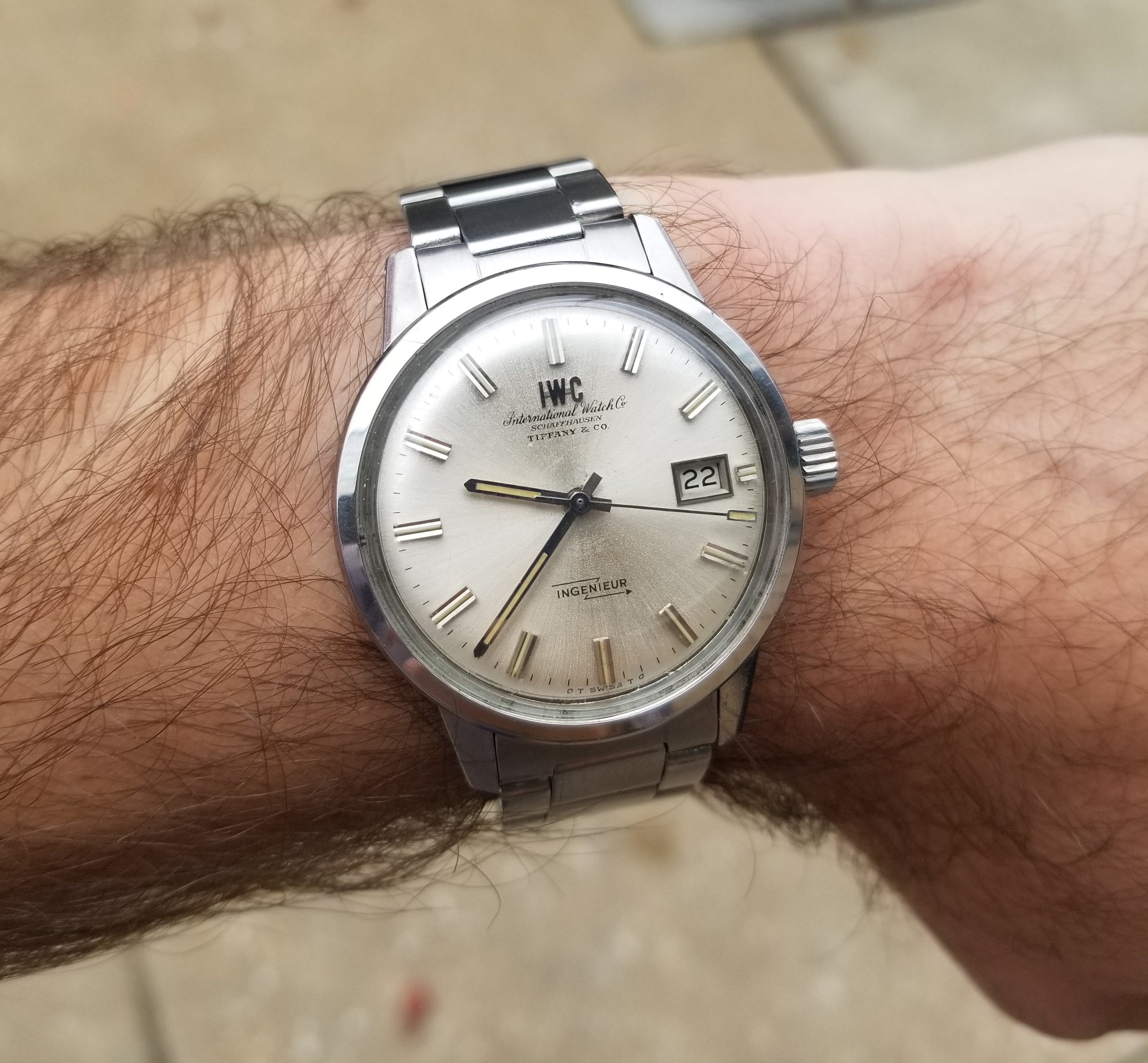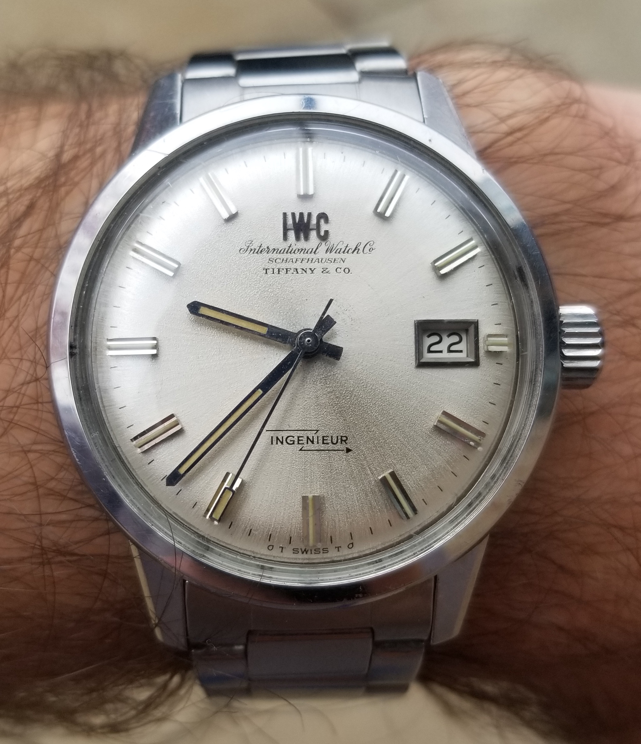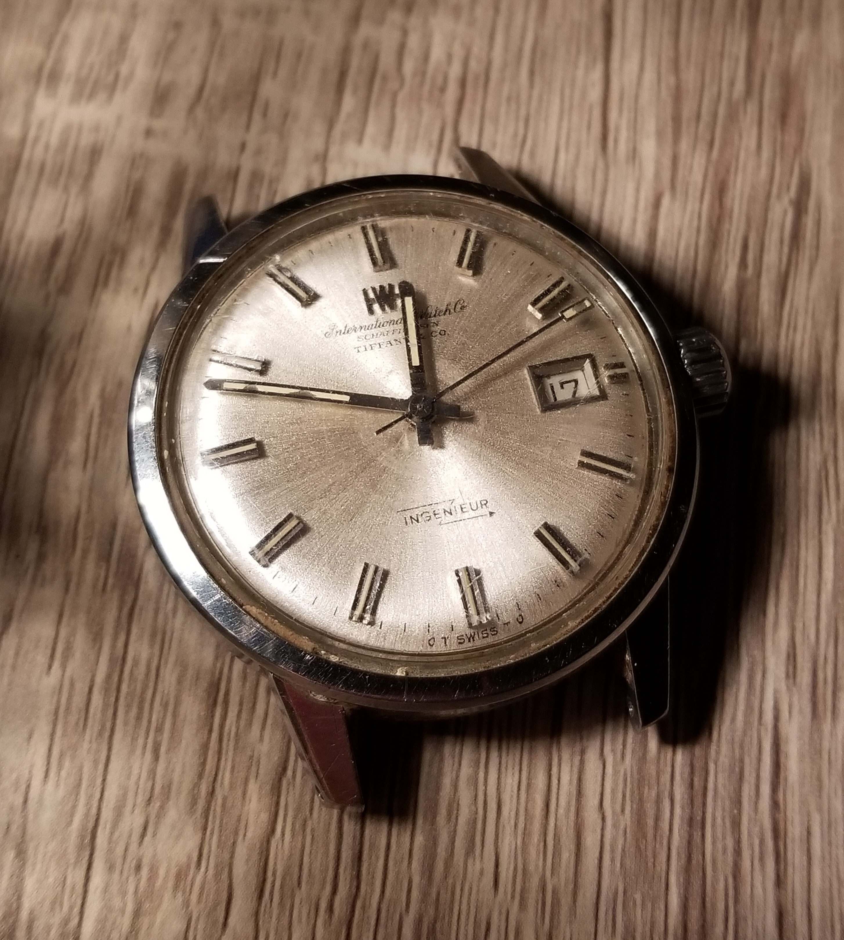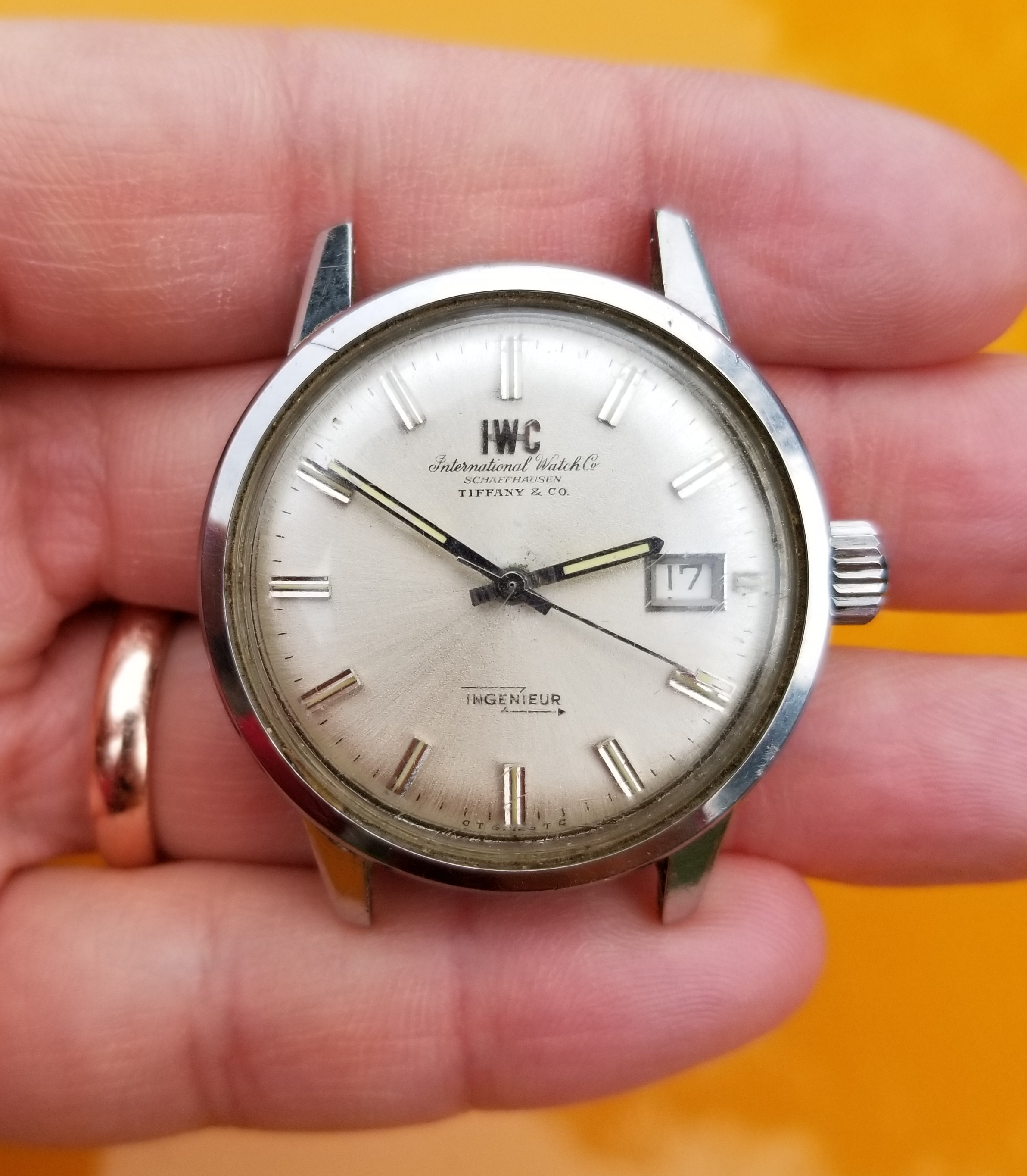 What makes this special is the APRIOR dial (gold) with Tiffany & Co. branding. I haven't see this on an Ingenieur before. The crystal is quite dirty but the dial looks lovely. The 666ADs tended to age poorly but the gold in this dial likely prevented degradation.
