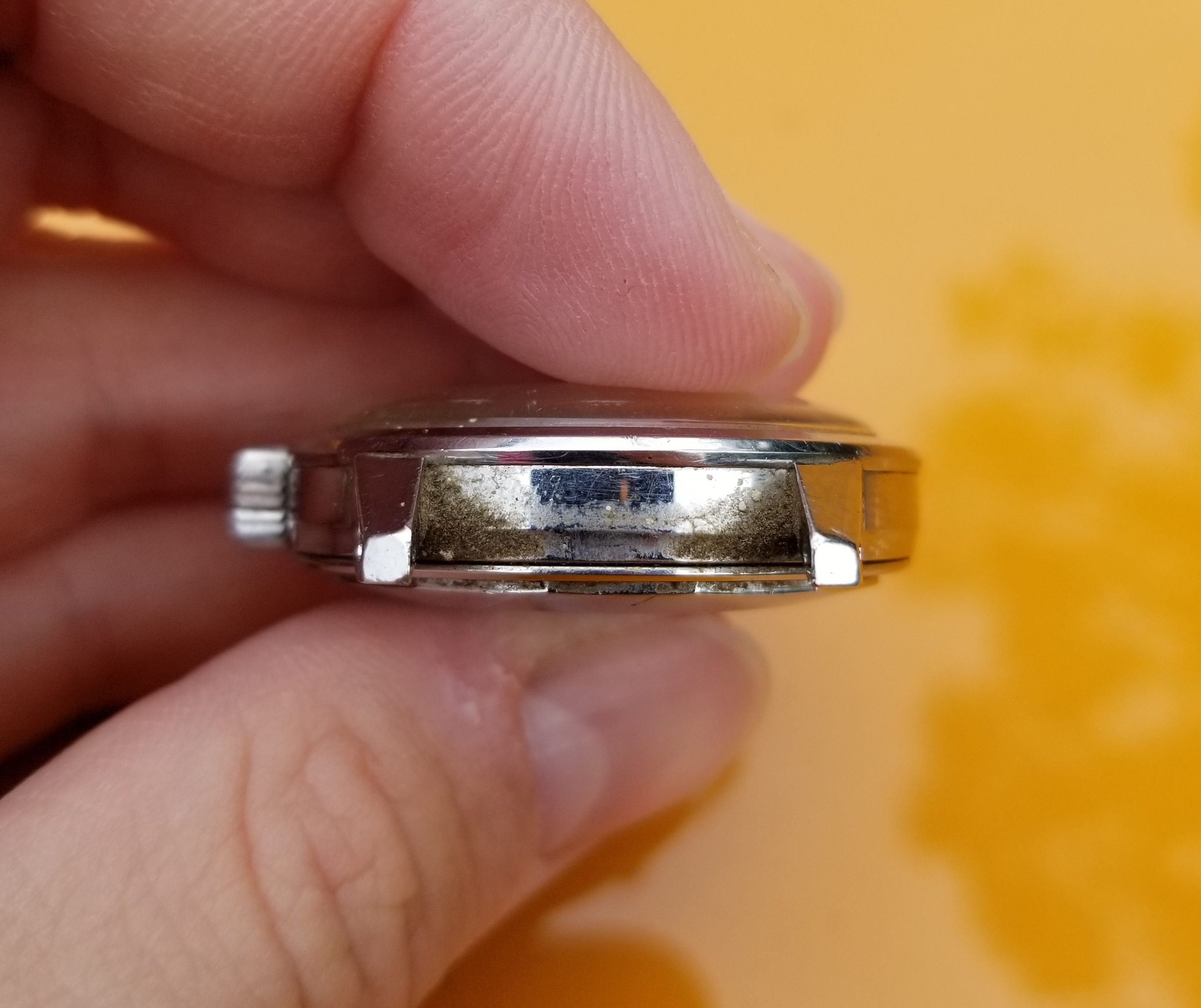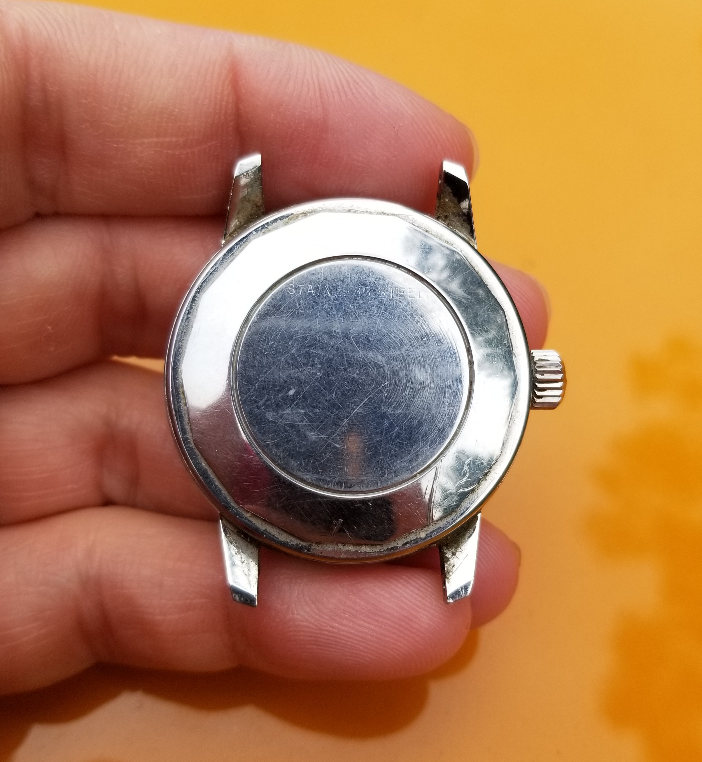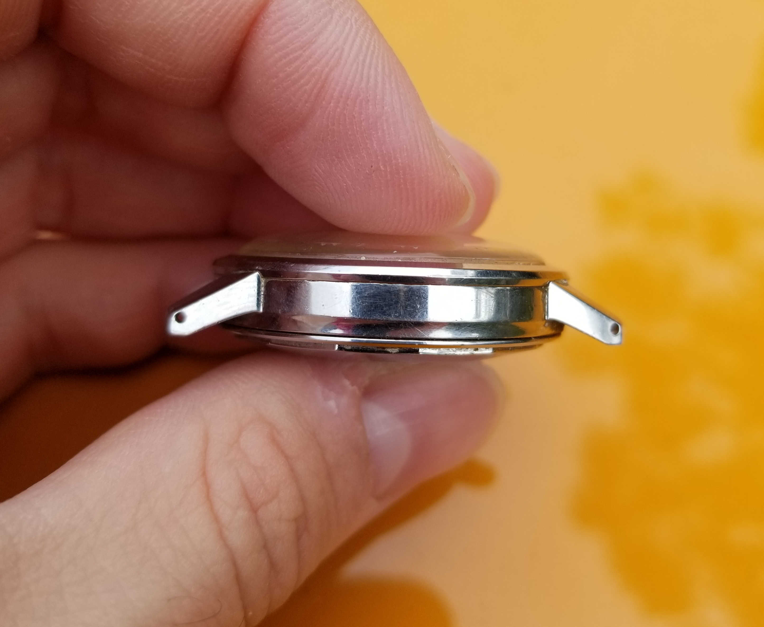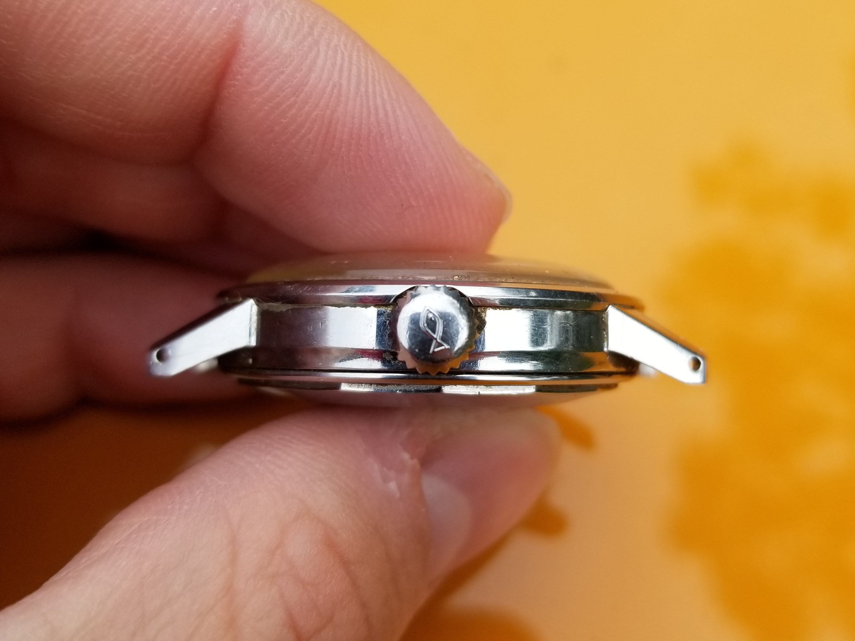 The watch is running but will go straight to service. Lots of wrist cheese, time setting is stiff. However, all parts are correct and it looks unpolished.