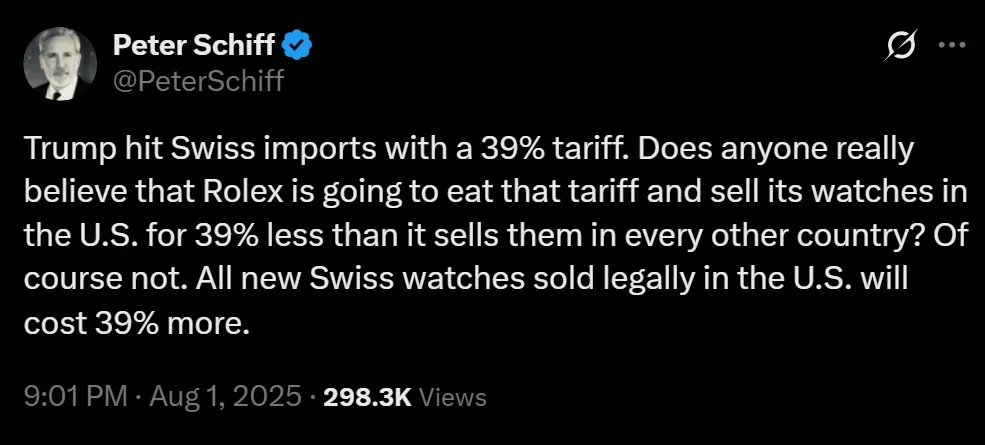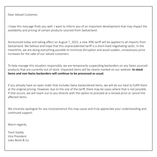 I had an emergency sit-down meeting with my wife about the tariffs and the urgent need to immediately purchase new Omega or another Swiss brand watch. The long and short of it is, I'm sleeping on the couch tonight and was given a long list of chores to complete this weekend.