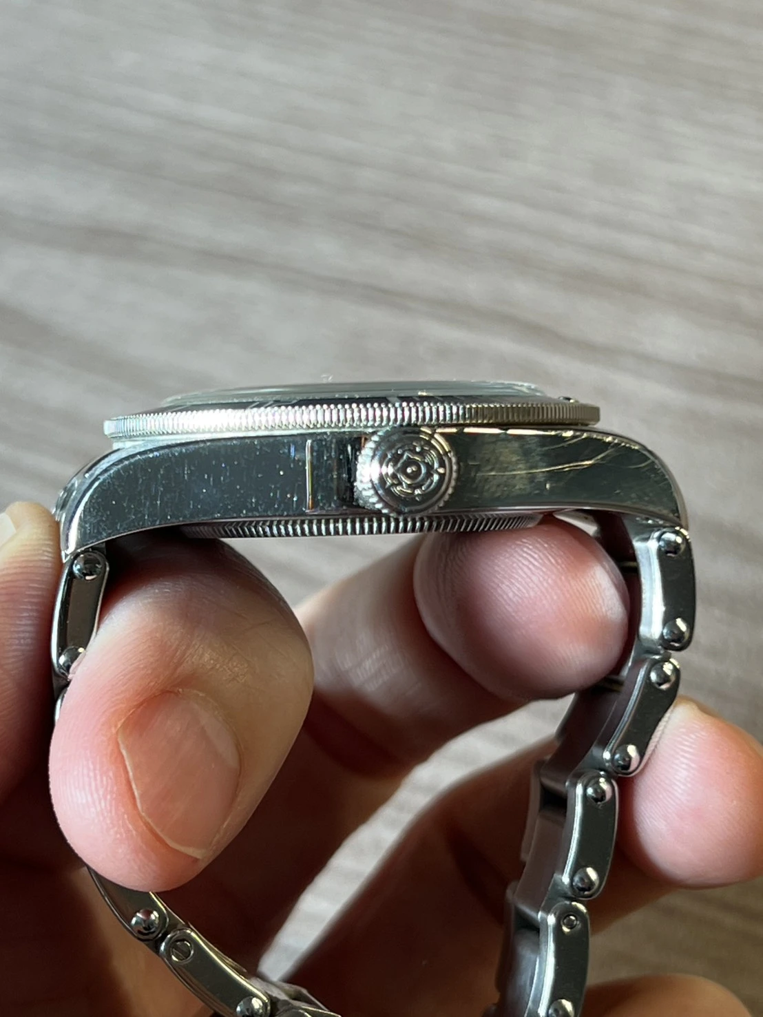 The watch itself has scratches all over, and I try to zoom in on those in my pictures. They may not be that obvious when you wear it.