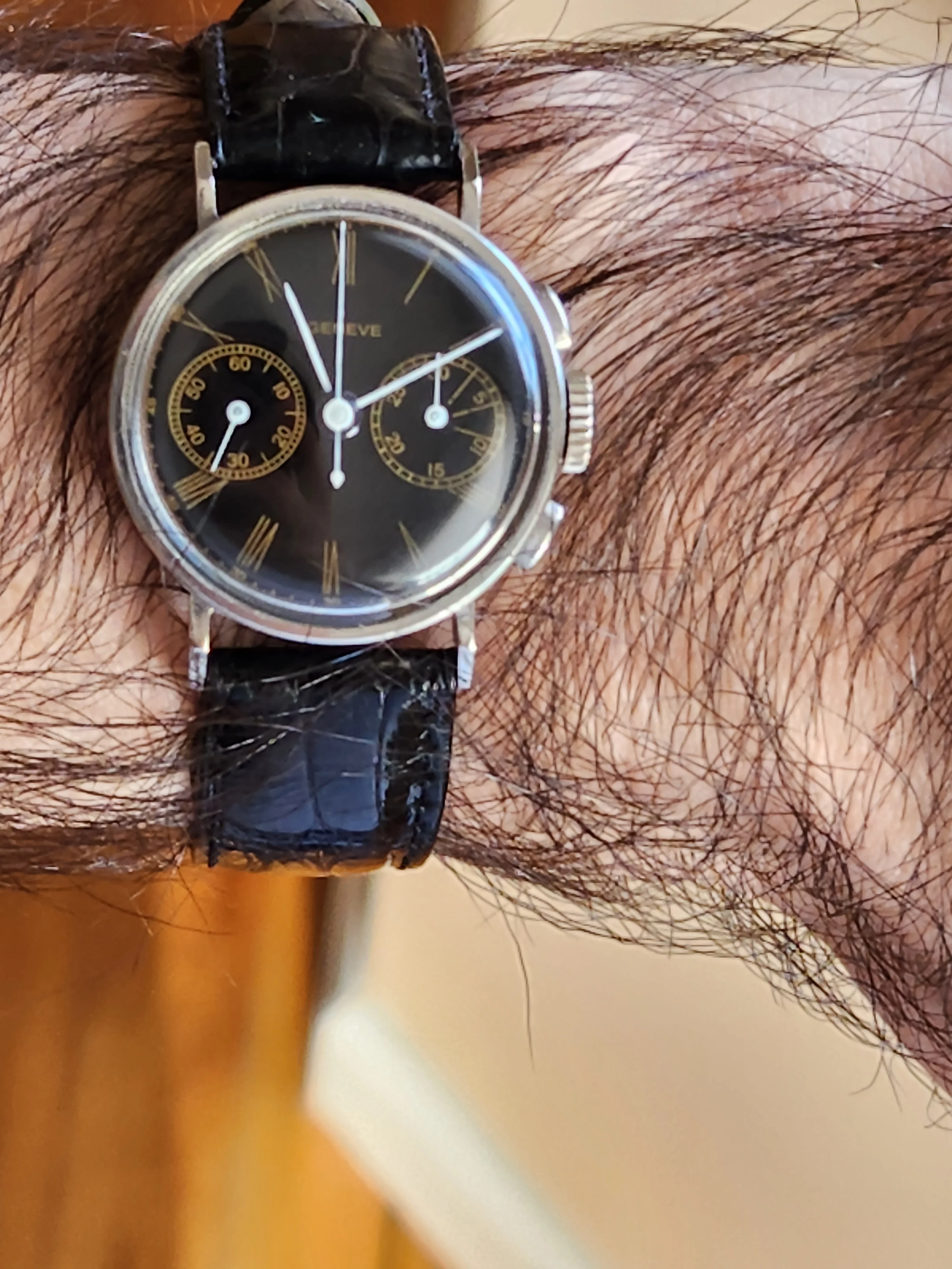 ·The 10.5 ligne valjoux 69 is an interesting movement to me and seems a mostly undocumented history. The caliber powered what are known widely as 'petite' or 'baby' chronographs, and I believe it was the smallest chronograph produced. I've owned one before (Gallet Officer), and I have just traded a friend for another (Minerva).