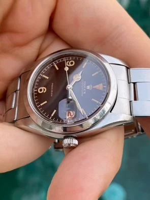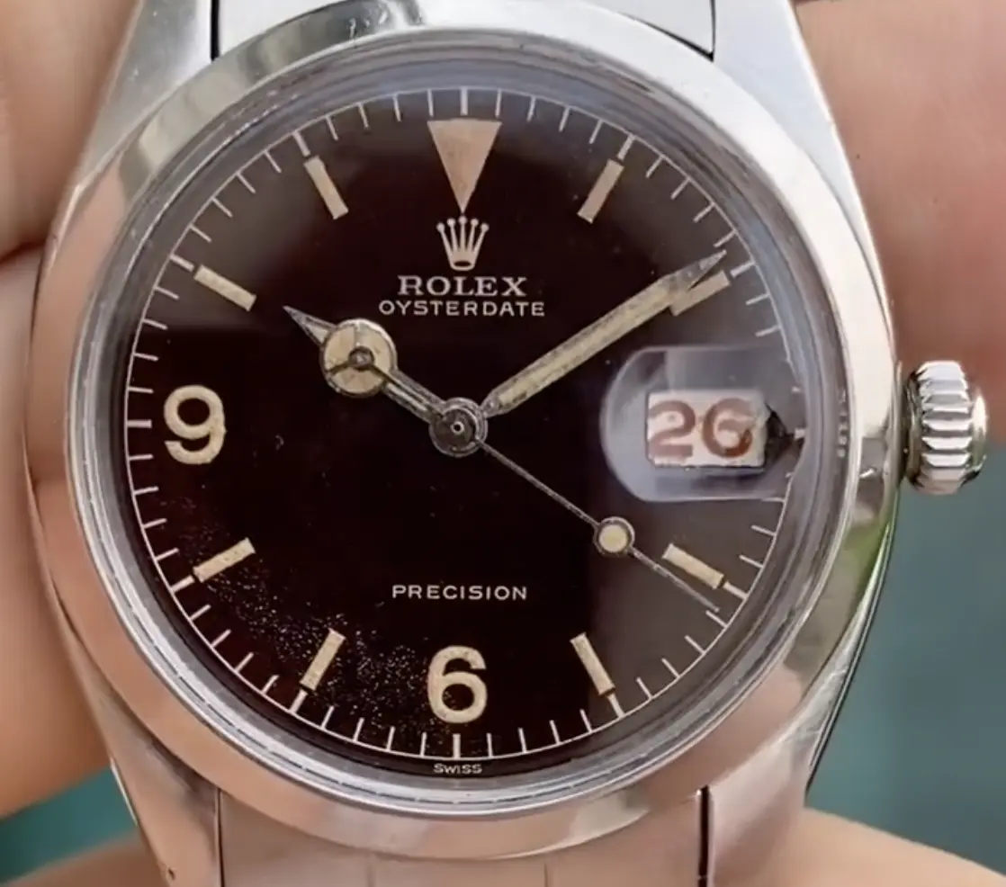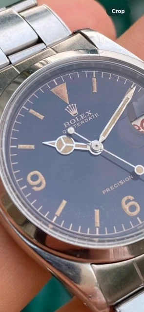 I stumbled across this Rolex Oysterdate and I'm wondering if anyone has more info on it. The dial appears unique (and probably a redial), but the lume/flake aging on it points to either a really rare dial or a really old remake.