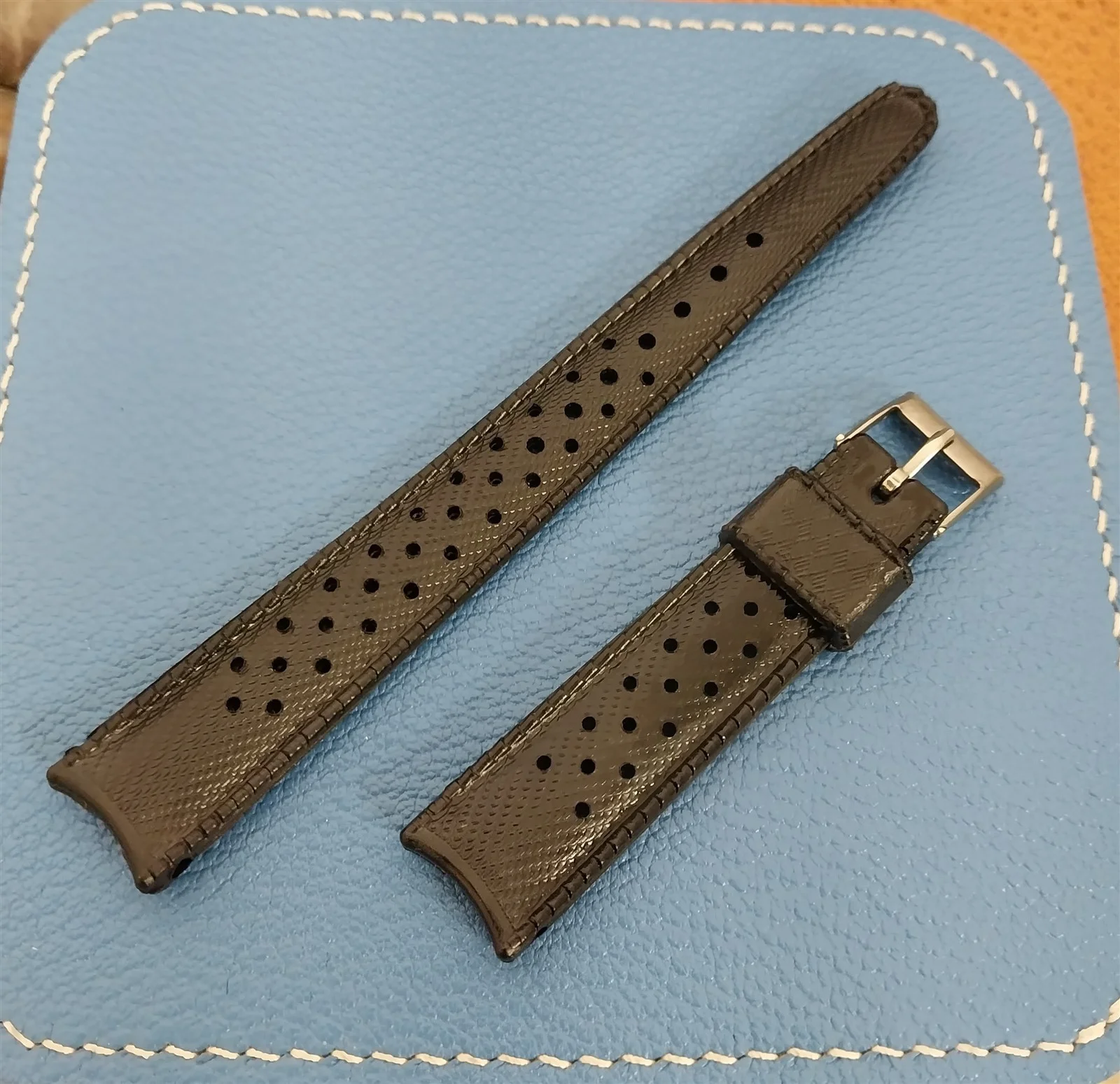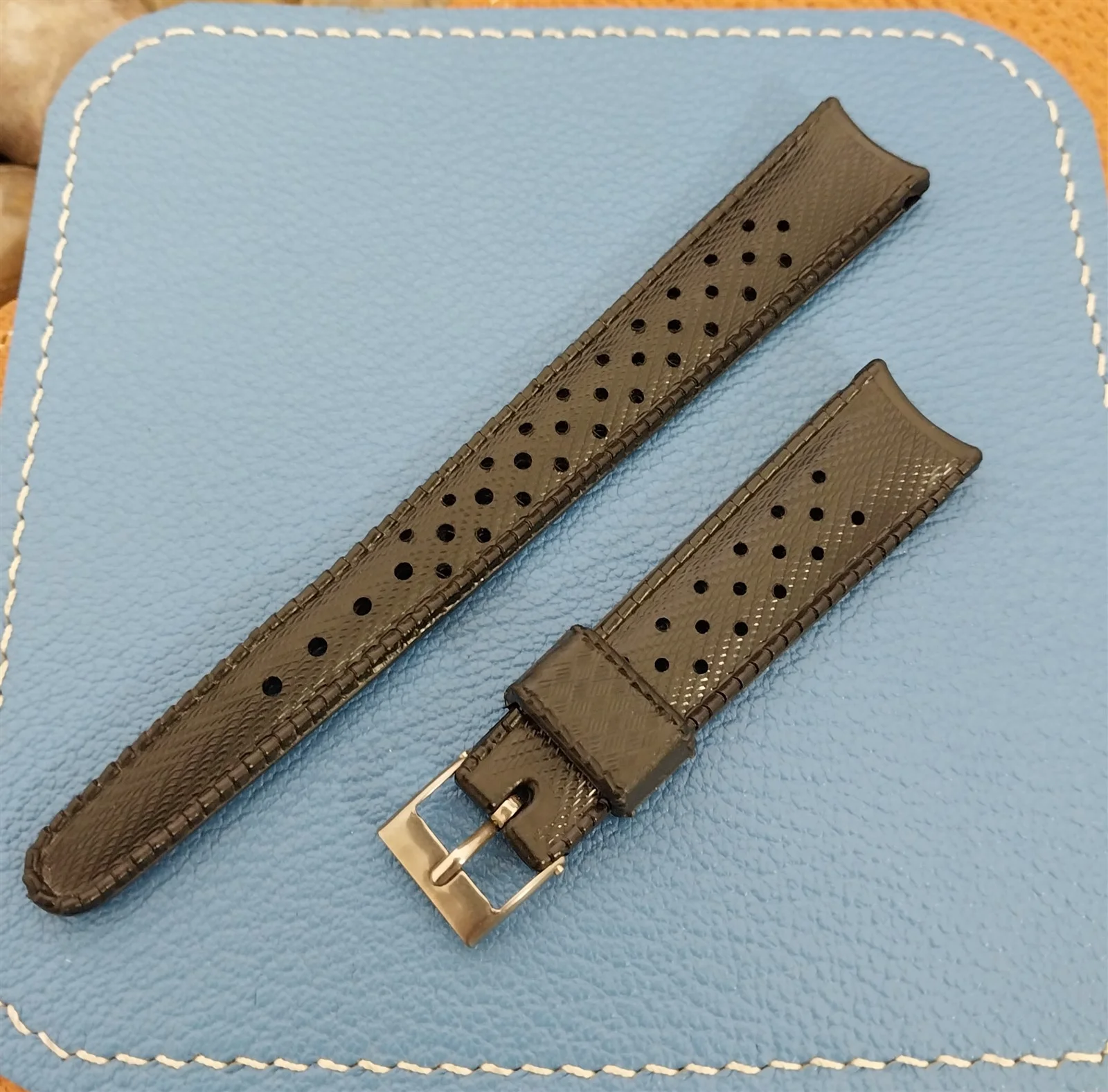 ยทNOS unused 1960s-1970s old-stock Swiss-made SUB black rubber dive watch strap.