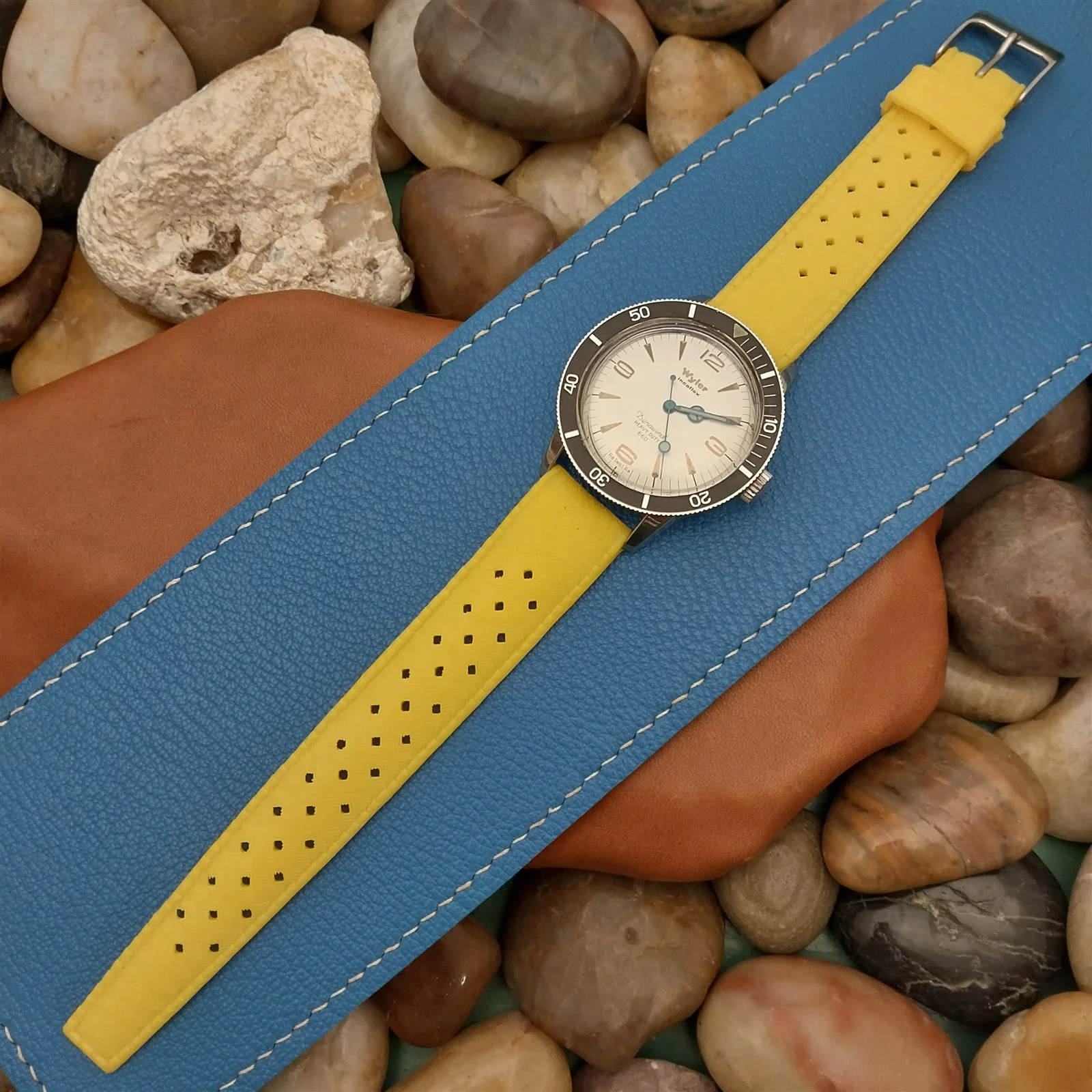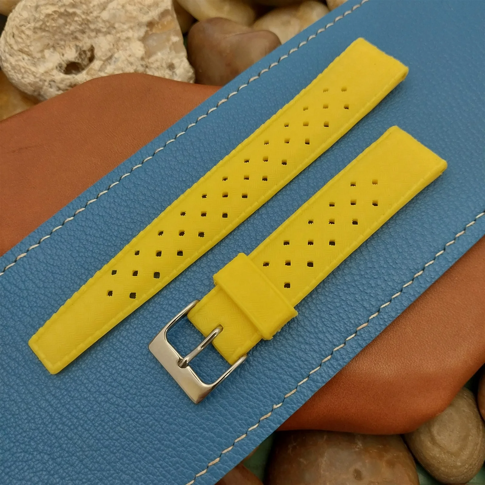 ยทNOS unused 1960s-1970s old-stock yellow rubber diving watch strap.