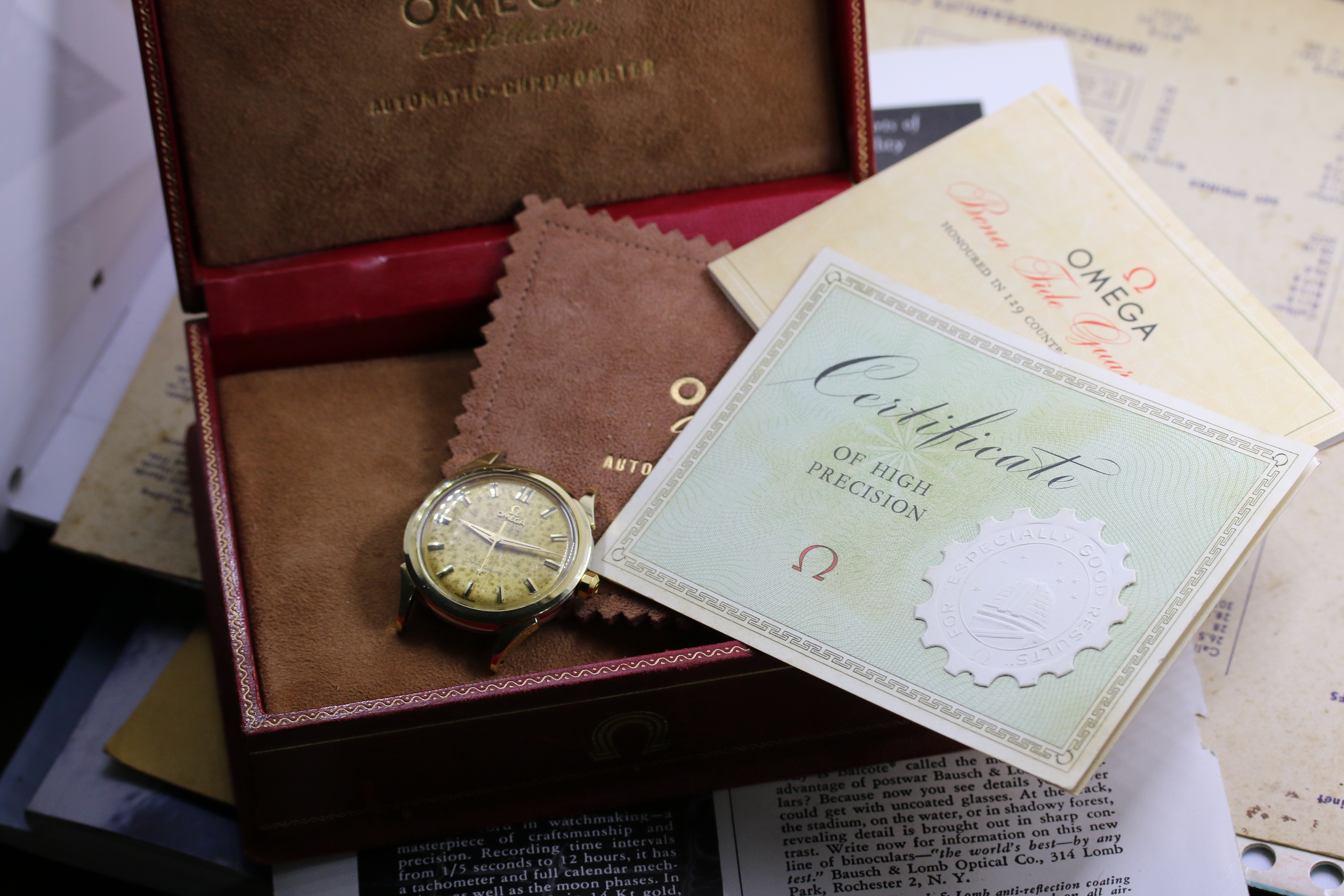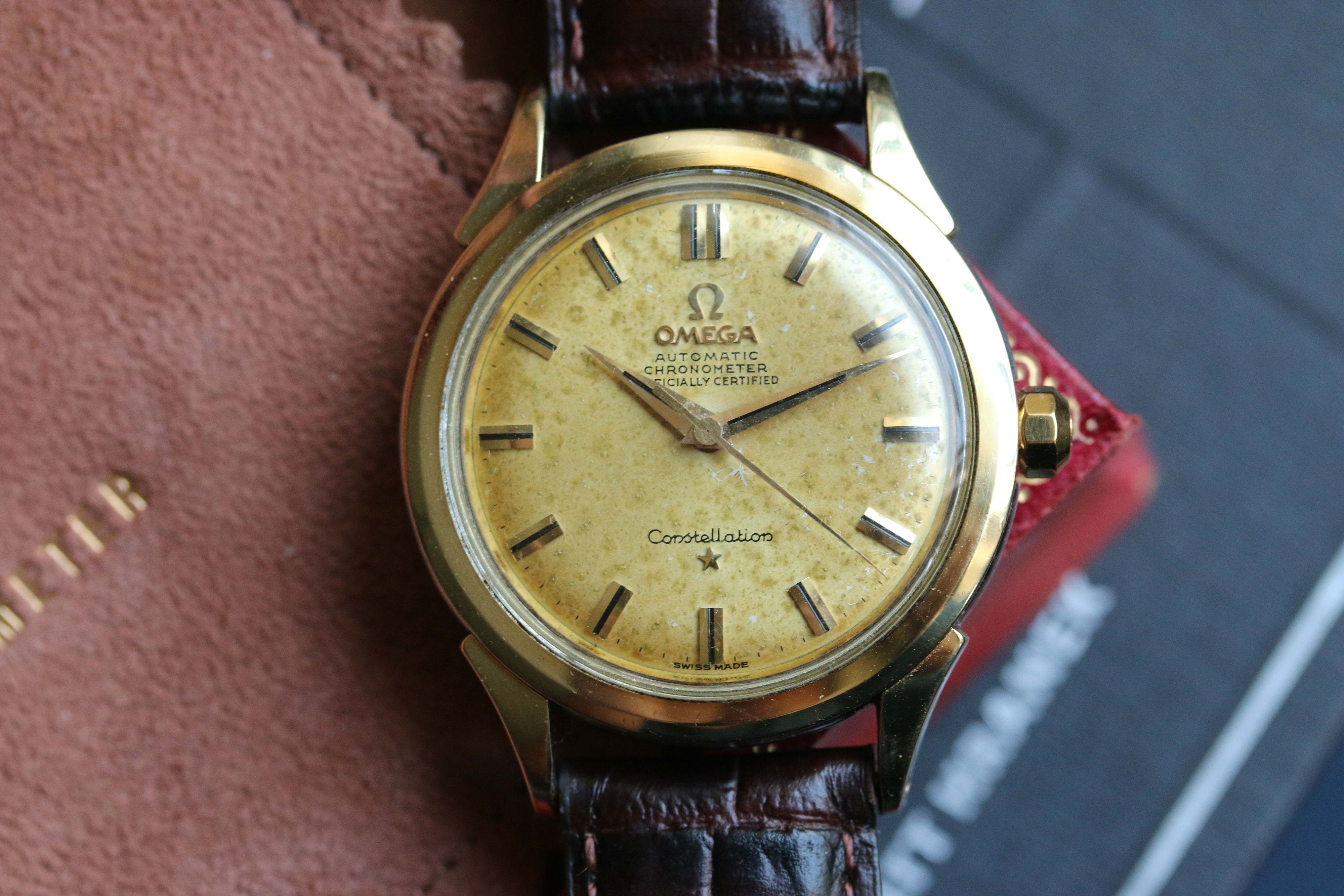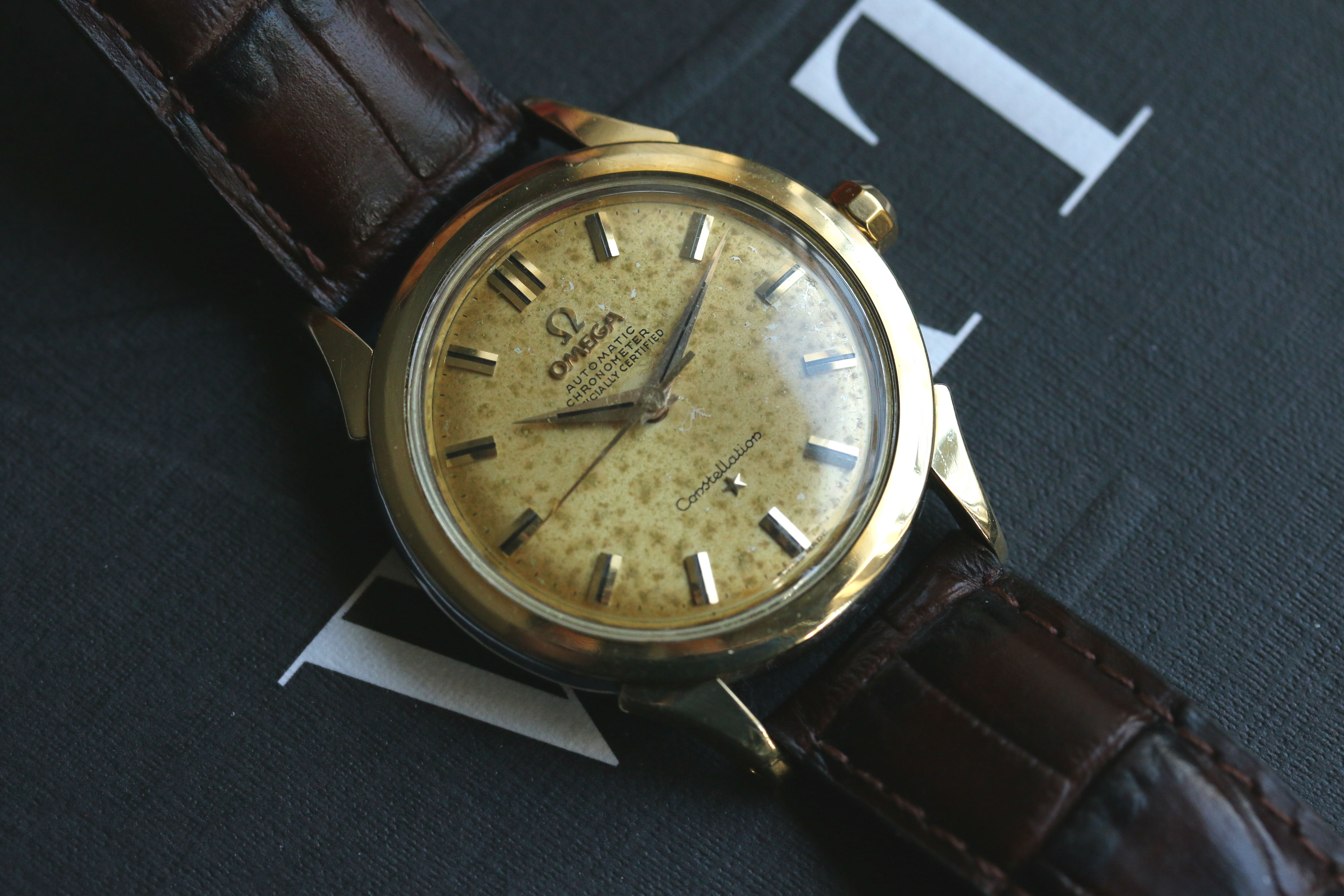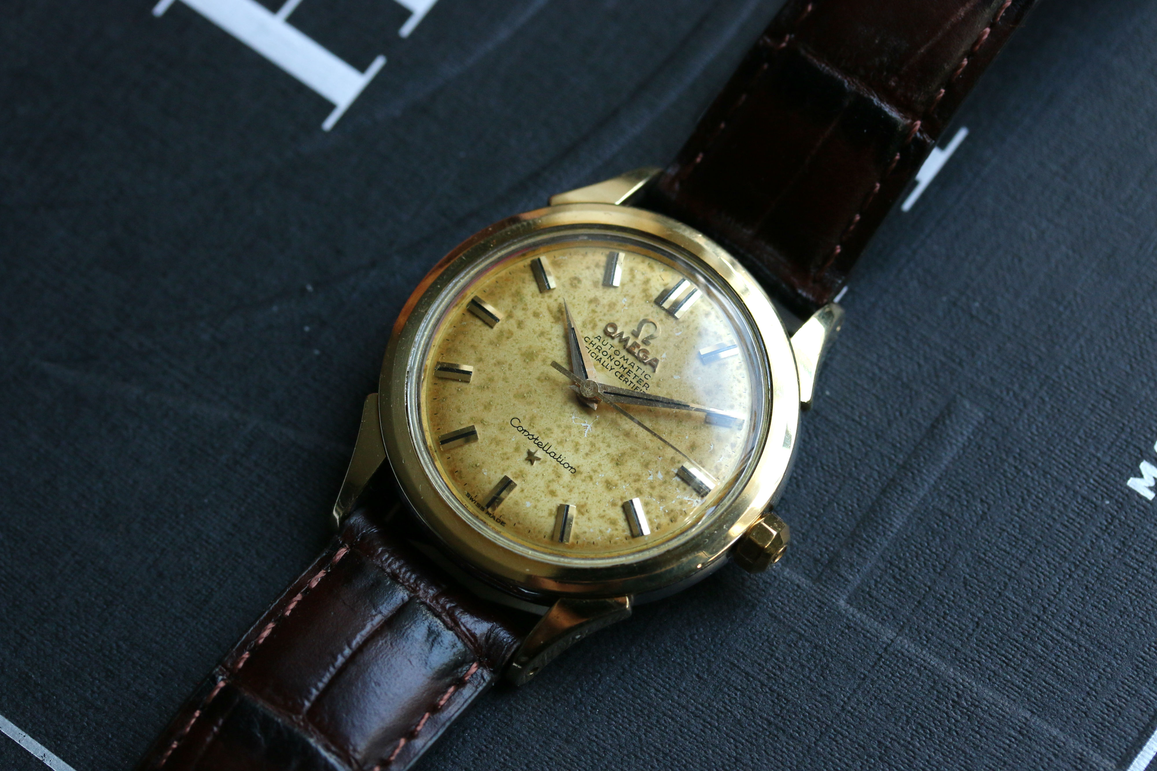 Up for sale is an uncommon Constellation 2887-2 with Box and Papers. Included in the package are the old warranty/receipt, chronometer certificate, inner box and the inner sleeve. Dial and hands are original but as you can see, the dial lacquer has degraded. Leopard dial, moldy dial, whatever you want to call it. 😜 The crown has been replaced with a modern replacement. The case is still in decent condition and the bezel edges are still evident. The caseback is also in nice condition. The movement was serviced many years ago but still runs strong. If you have any questions, please feel free to shoot me a pm. Happy Holidays!