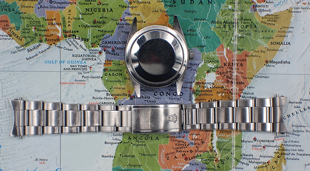 BRACELET: This Explorer comes on a Swiss-made 7206 rivet Oyster bracelet with “58” end pieces, which are correct for 1016s of this era. However, the clasp blades and buckle are later service replacements, with the “VC” code on the blade dating to circa 1978. Note also the very uncommon style of the clasp embossing and design - a bit of a Rolex rarity in and of itself, I’d have to say. This rivet bracelet is in Excellent cosmetic condition and has 11 links with only minimal stretch. It fits up to around a 7 1/4-inch wrist at maximum length and can be sized down around 7/8” from there.