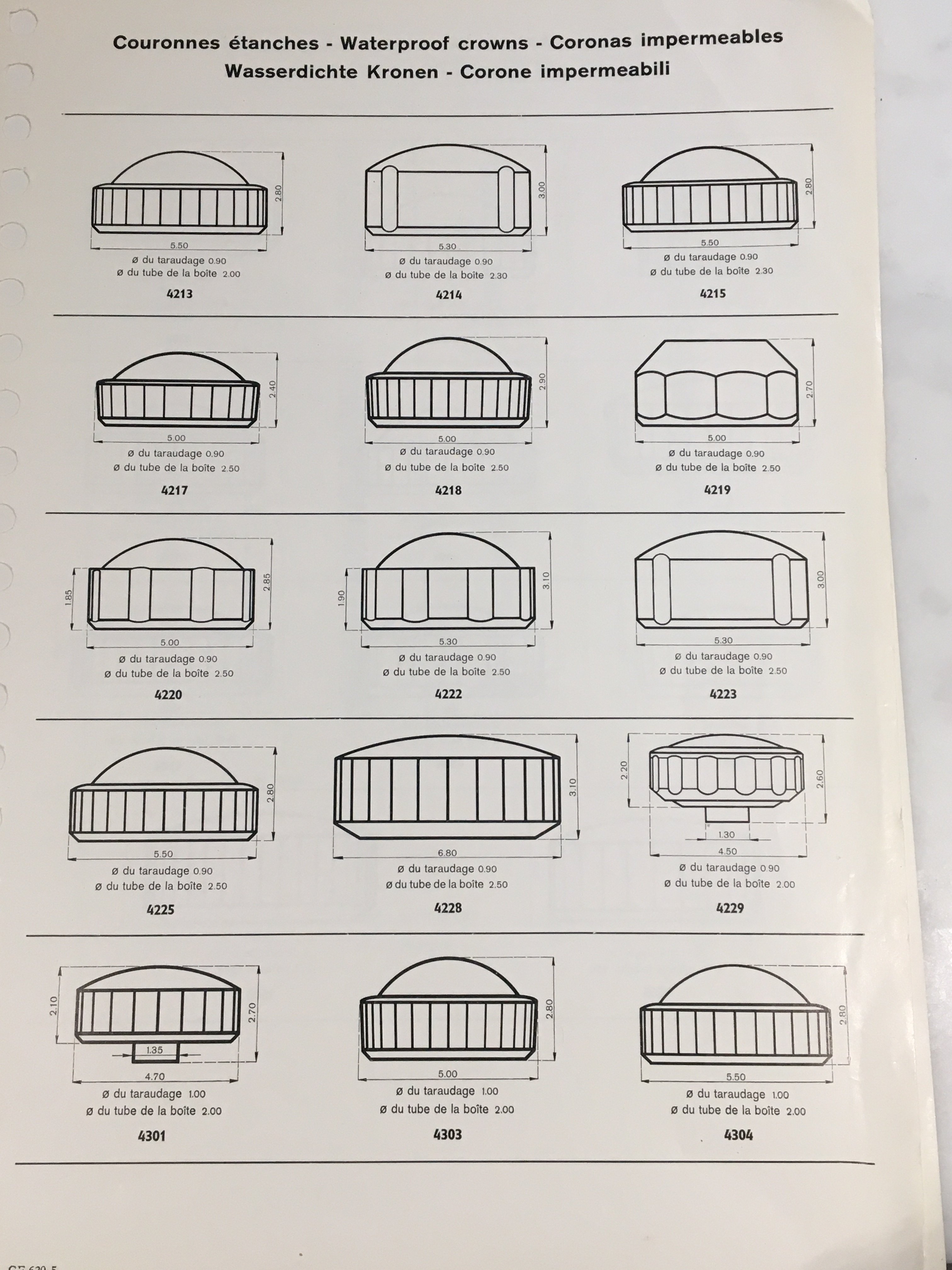 I.e. two “thin decagonal” Connie crowns (3205 vs 4204), two “thick decagonal” Connie crowns (4209 vs 4219), and two “clover” Seamaster crowns (4212 vs 4223).