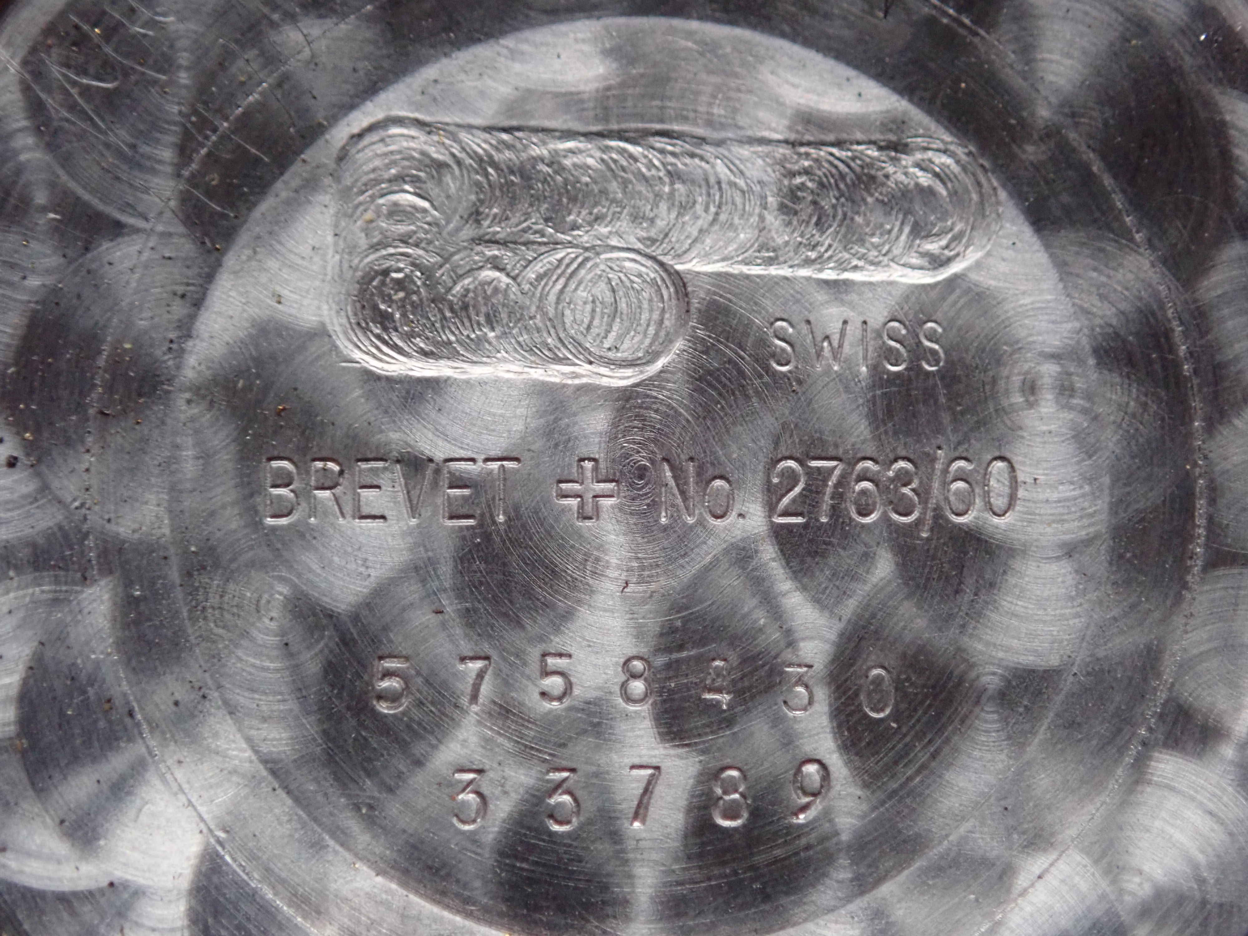 As I am currently selling a Helvetia dive watch with a built-in depth gauge, I have been approached by a member questioning the authenticity of it. Apparently, all Helvetia divers had a different case construction than mine and that the case construction belongs to a different watch, a Nivada. This is from looking at the "brevet" number on the case back and the theory is further strengthened by the fact that a section of the case back has been drilled out. See photo underneath.