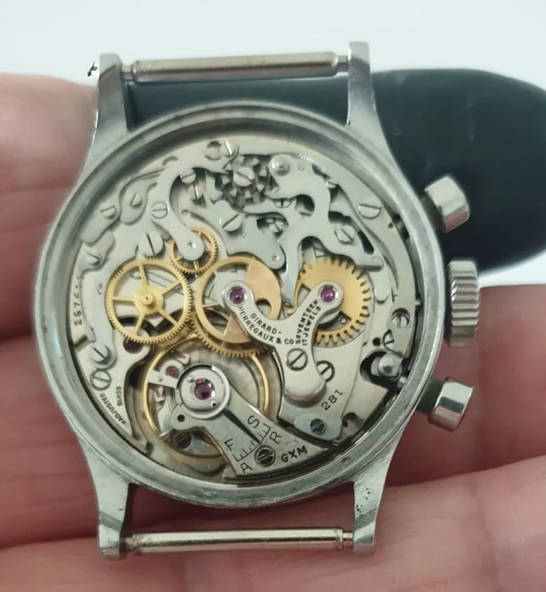 Up for sale is a Girard Perregaux 22209 Cal. 281 that's been in my collection for many years. The case measures about 34mm in diameter without the crown, and takes a 17-18mm strap. Dial and hands are original, and the dial has slight age and is a silver/light robin egg blue color in some light. Case is in decent condition, the caseback shows some marks where it looks like the incorrect opener was used. Chronograph works well, watch has not been serviced for many years and runs about -10 to -30 sec slow, so I would eventually recommend a service. Watch will come on a different strap from the one as shown. If you have any questions please send me a dm, and I'm also open to trades for other chronographs/vintage watches. Thanks!