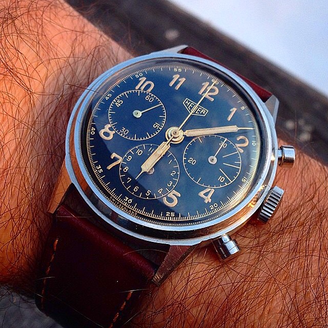 Let's not forget that Heuer existed well before the Carrera/ Monaco/ Autavia era- beautiful 2447 by @djayrom1 #vintage #vintageheuer #heuer #tagheuer #calibre11