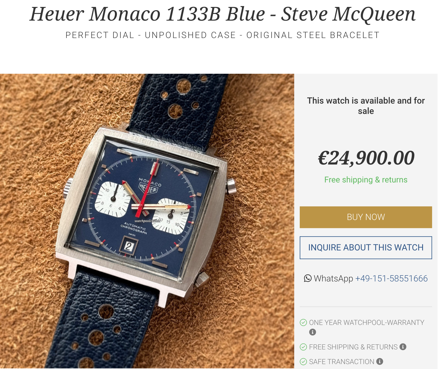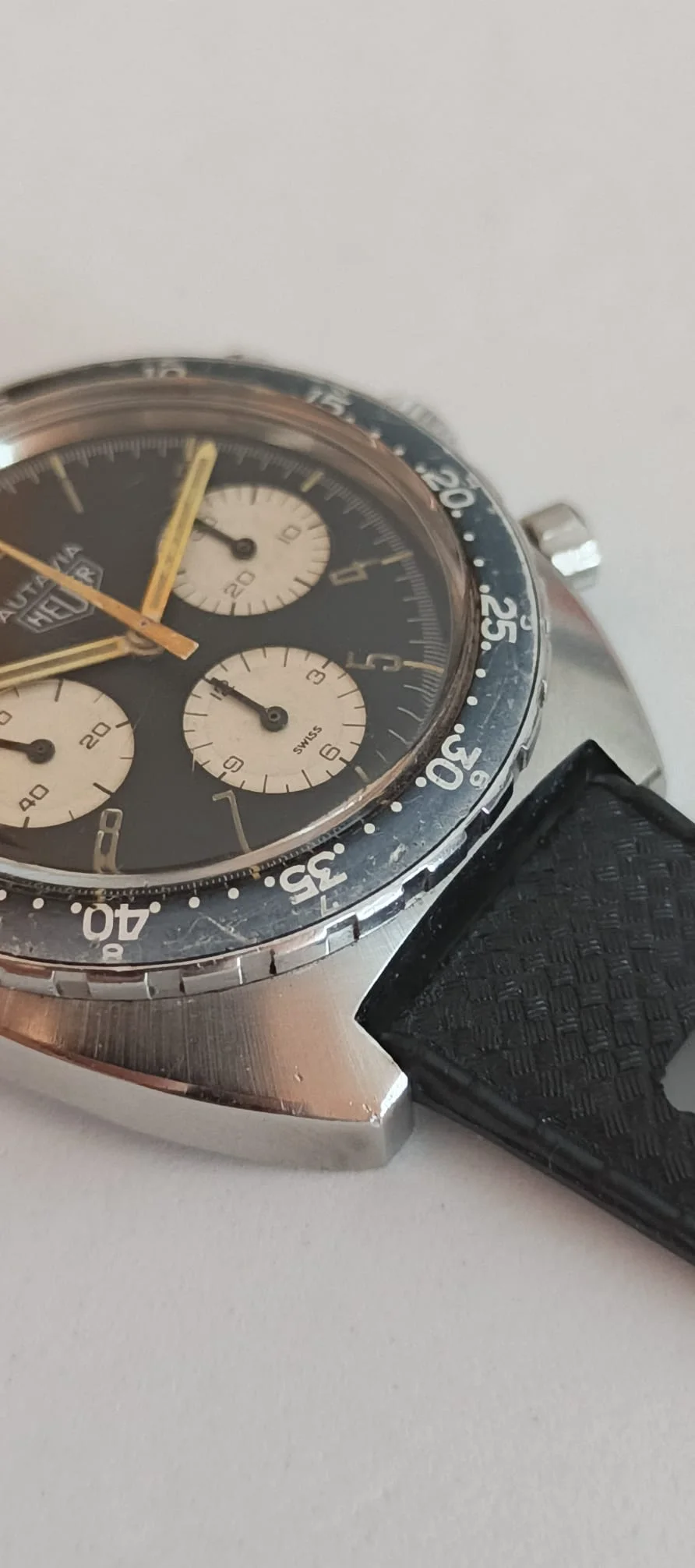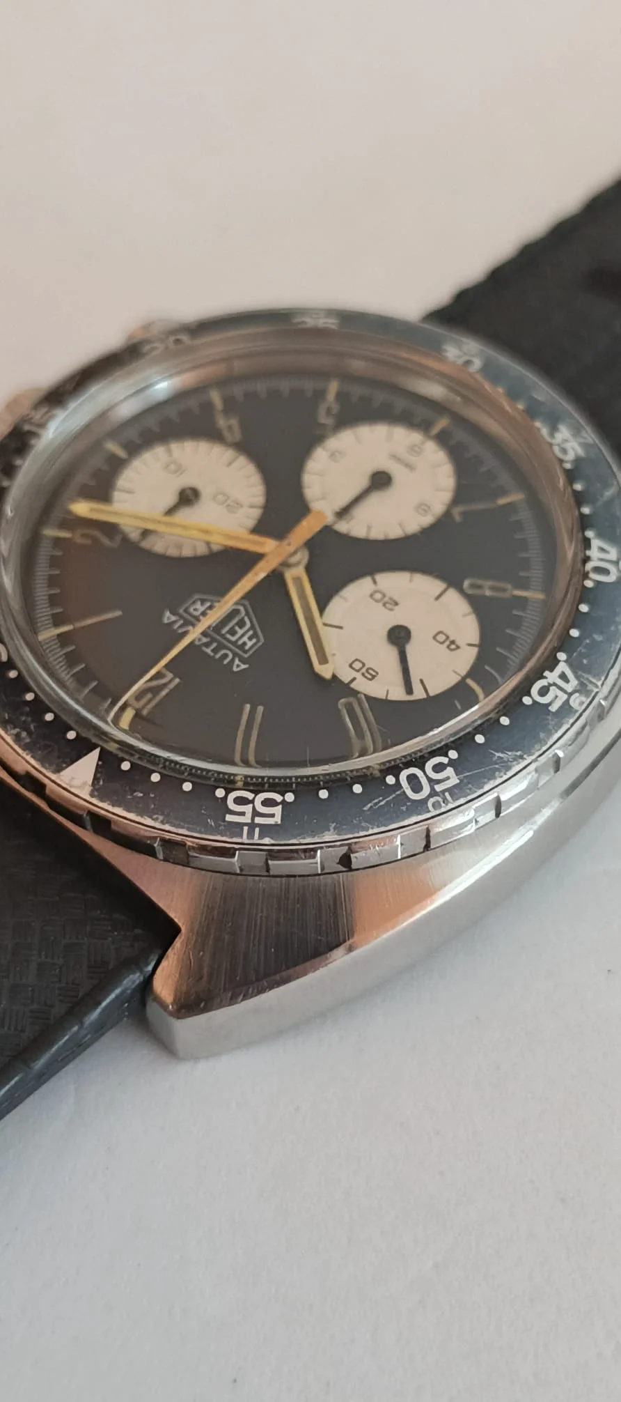·Monaco 'Dark Lord' listing sold recently, lasted about two days. Worn very well with much of the black coating worn off the case. That dial, hands and helmet box made someone happy for US $52k