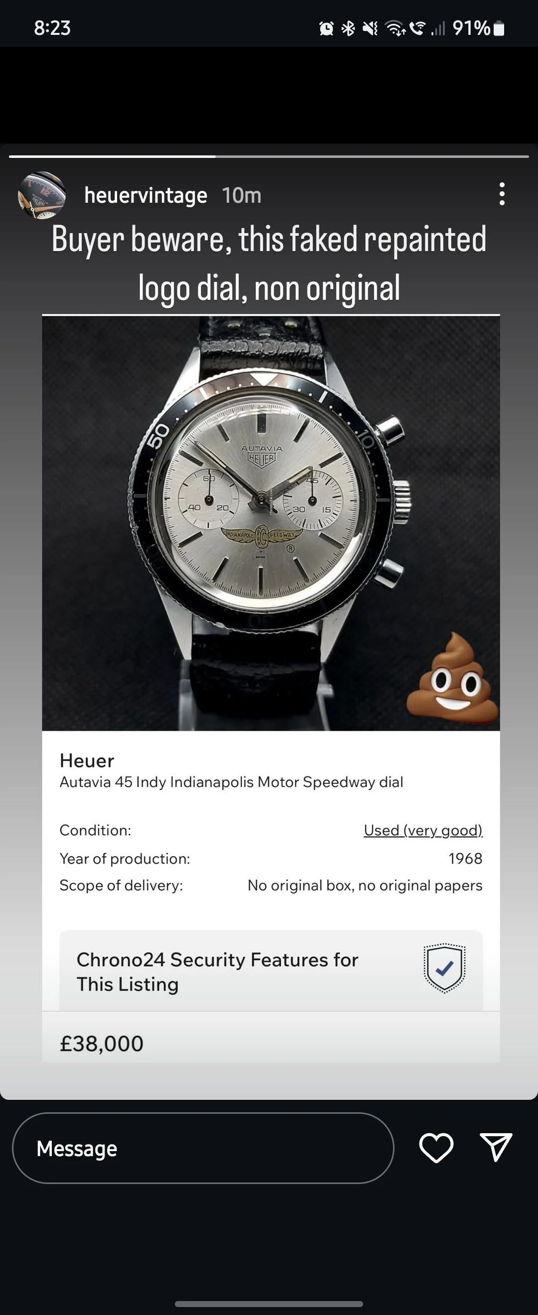 A real grail offered this weekend on C24. Autavia Indianapolis Motor Speedway with silver 45 dial. Listed at US$49K, ouch! 😵💫