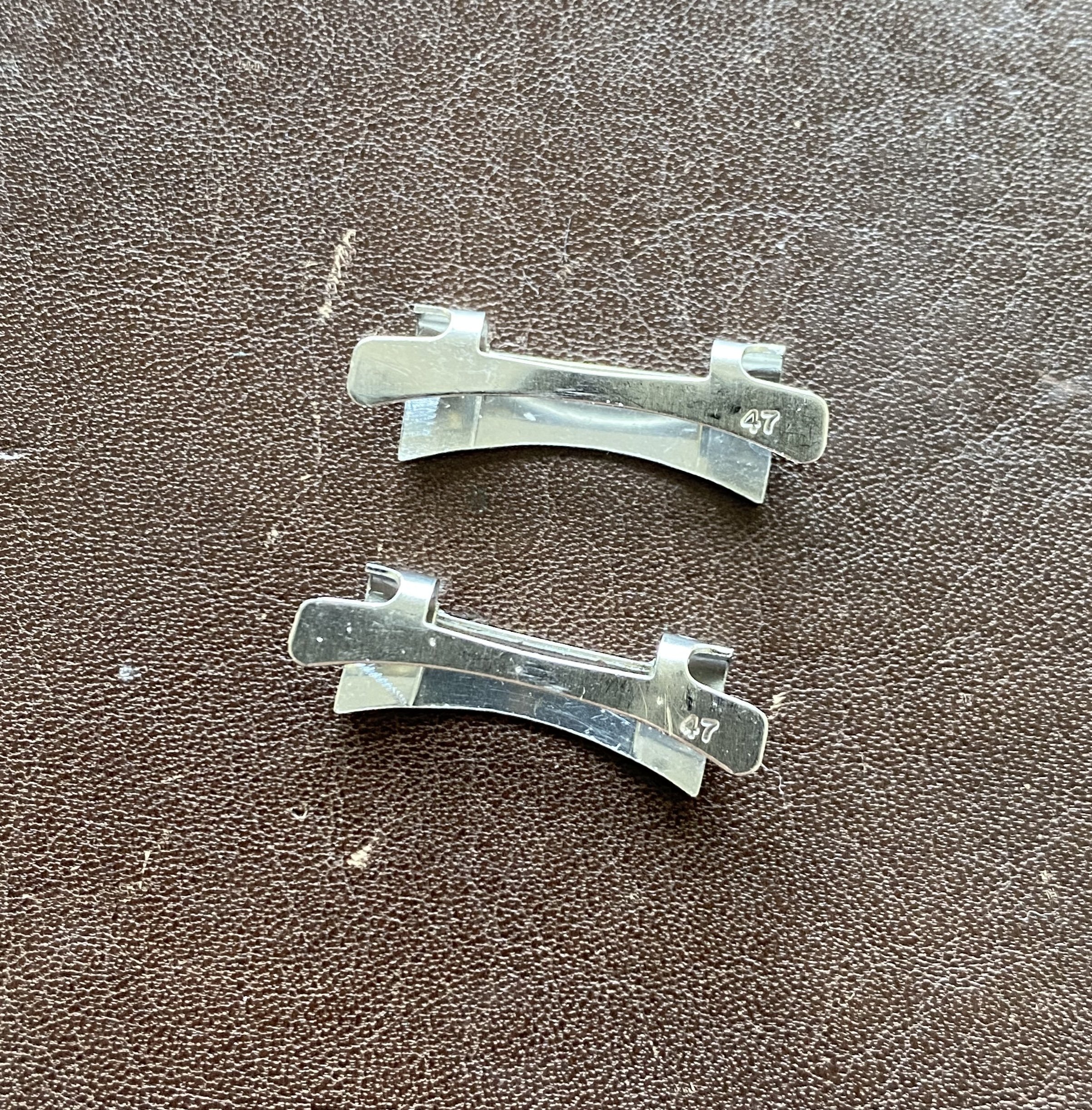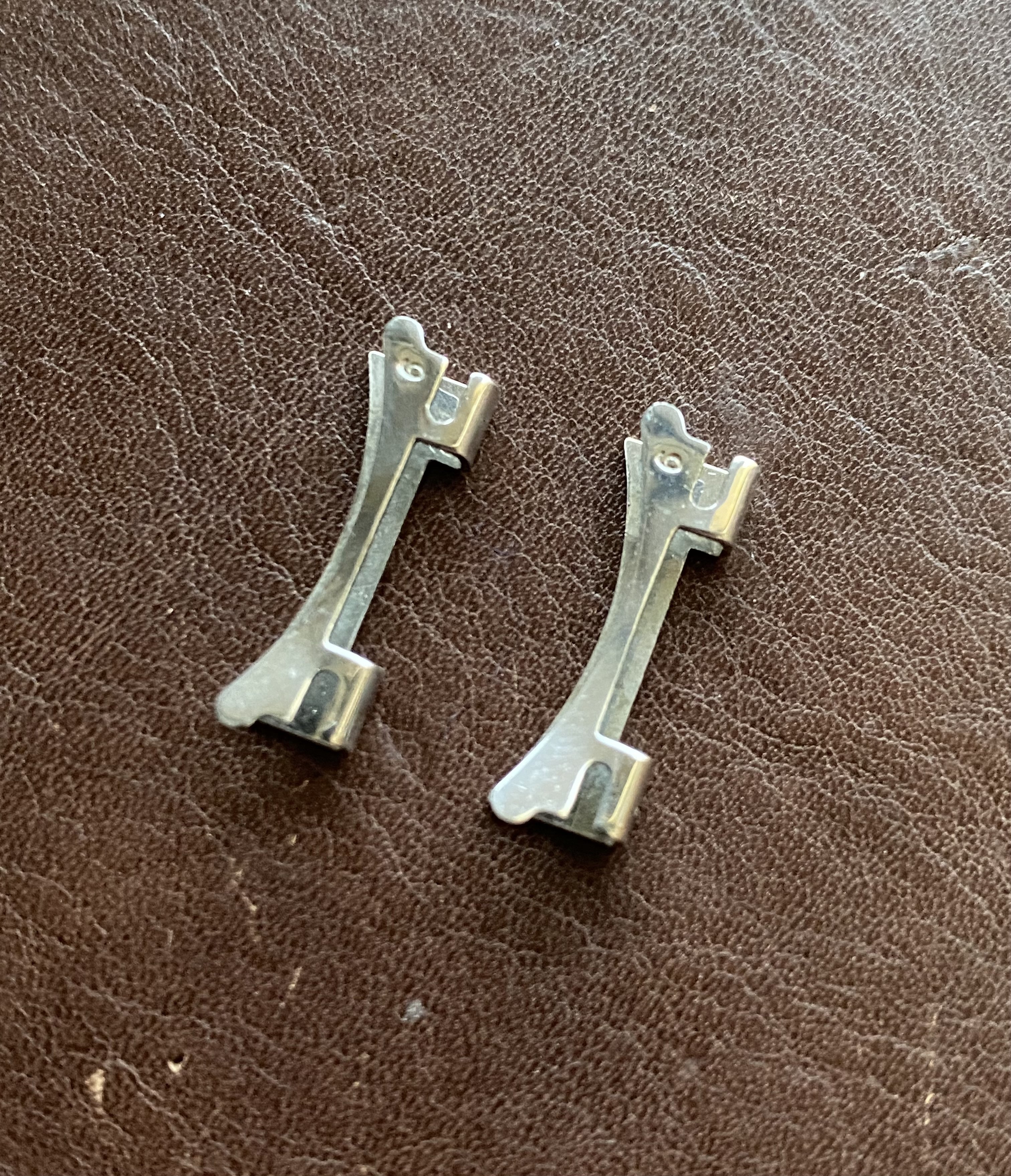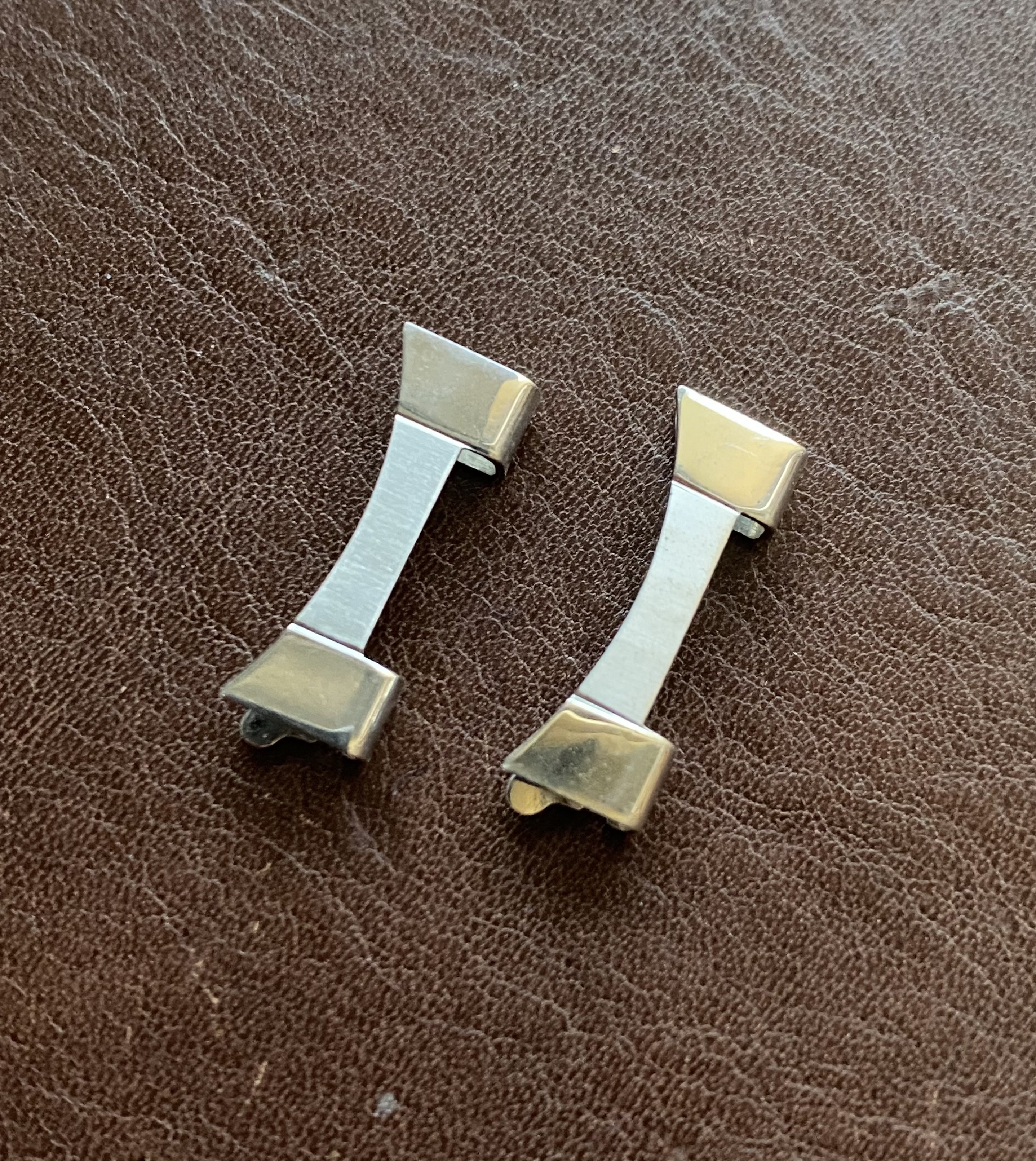 #47 endlinks for a 1175 bracelet (not the 7077 above) that have been shaved to 18mm. Will fit many 60s and 70s Omegas. Nice condition. Asking $100.