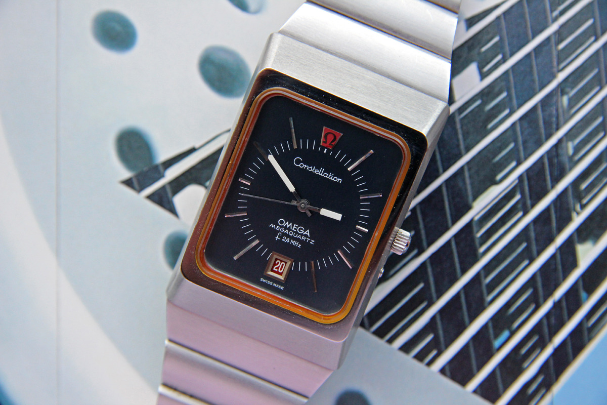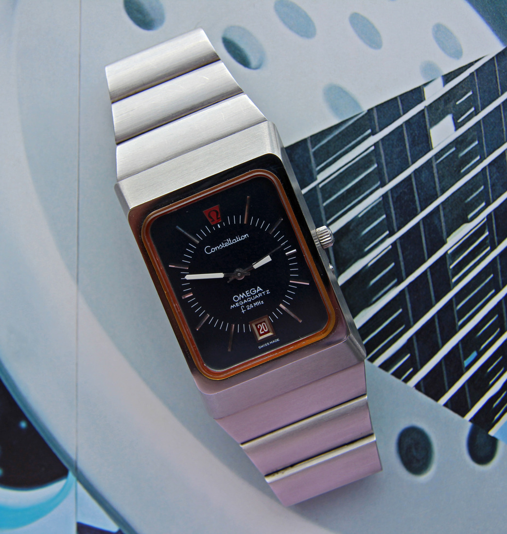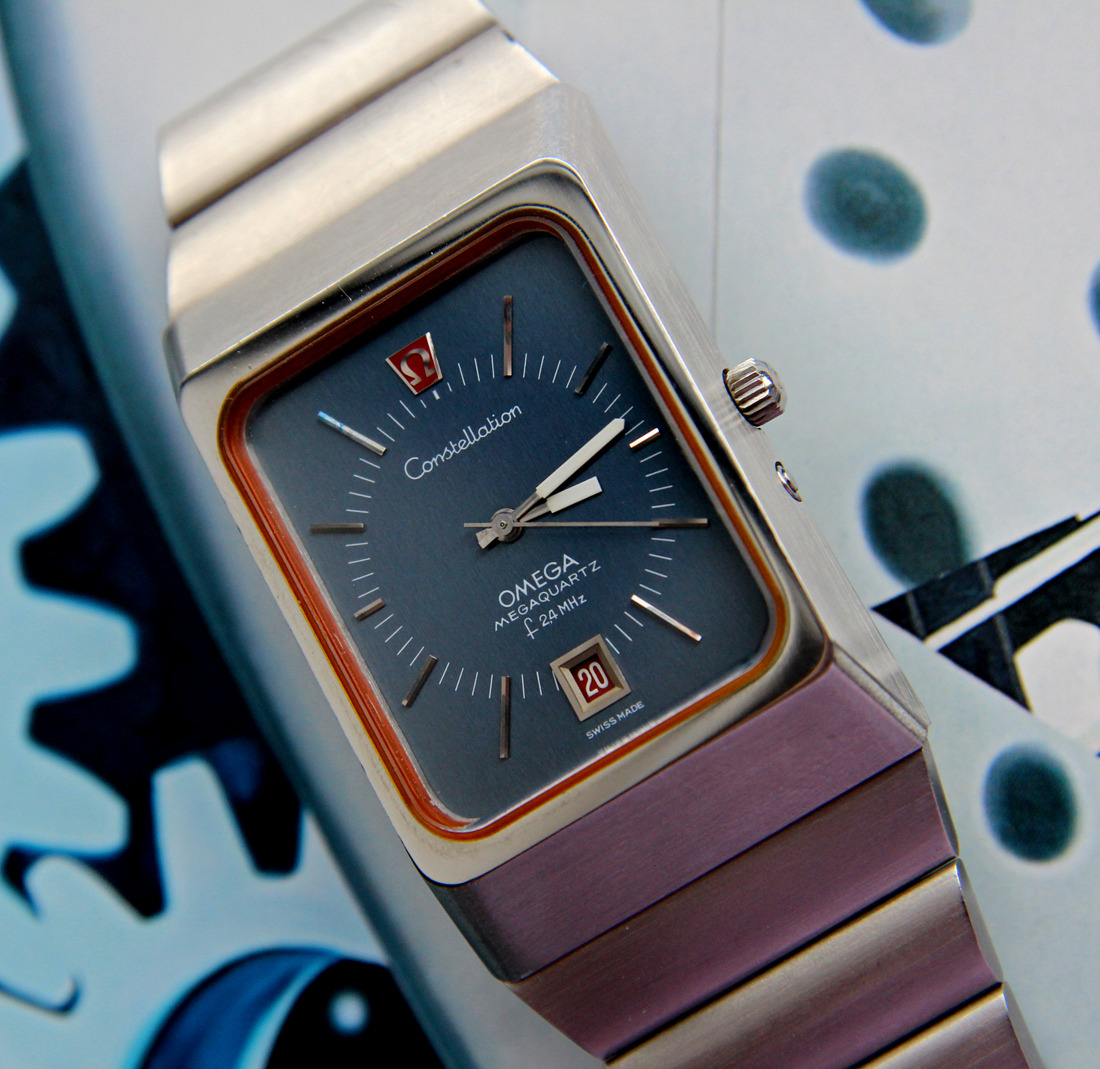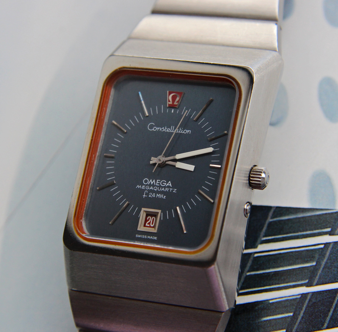 Up for sale is this cult classic early 1970s Omega Constellation Megaquartz 2.4MHz with rare non-starburst metallic blue dial in amazing condition and on its original heavy bracelet.This hard to find dress version of Omega's famed Marine Chronometer is considered one of the landmarks in electronic timekeeping and this example is in remarkable Near Mint condition without the usual door jam marks one usually finds. It also comes on its genuine original and full size reference 1209/202 bracelet which can fit up to an 8" wrist. To make things even sweeter, this great Megaquartz Constellation has just been cleaned and serviced by my watchmaker with a brand new battery installed and so will come with a 6-month movement guarantee for all normal non-abusive use.