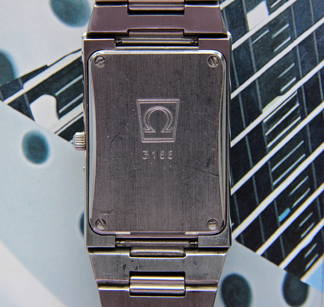 CASE & CASEBACK: Extremely large and heavy 31mm wide x 49mm long x 13mm tall stainless steel rectangular case is super clean and unpolished with all edges and bevels sharp and only the most minor scratches despite 40+ years of life--remarkable Near Mint vintage condition. The outer caseback shows slightly more wear with some small accumulated marks/scratches but the Omega symbol and external number (believed to be related to the Marine Chronometer certification process) are very crisp--externally Excellent cosmetic condition. The 4 grub screws are not overly worn and screw the back in tightly and the correct bespoke flat rubber gasket is present and in good condition. The inner caseback has no corrosion and shows all the correct original Omega nomenclature of the period, including the proper reference numbers.