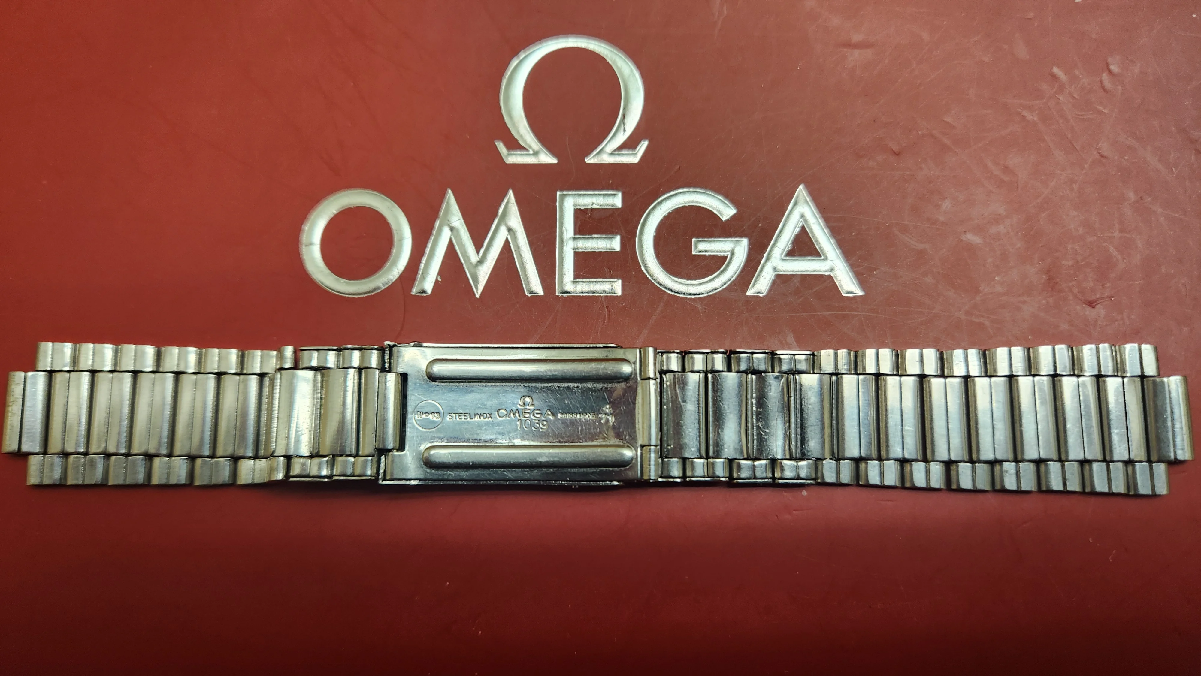 It has the clasp cover of a late 7077 or 7912 with the overhanging Omega symbol and the LONG clasp. There are some tool faint marks and and signs of polishing on the clasp. The clasp leafs are from a 1039 with a 4/71 date stamp. I believe the links of the bracelet are from a 1035 since the side links are hollow, but have little play and are nice and close together (unlike what is commonly seen on the folded end links of the 7912 which have more space between the links).