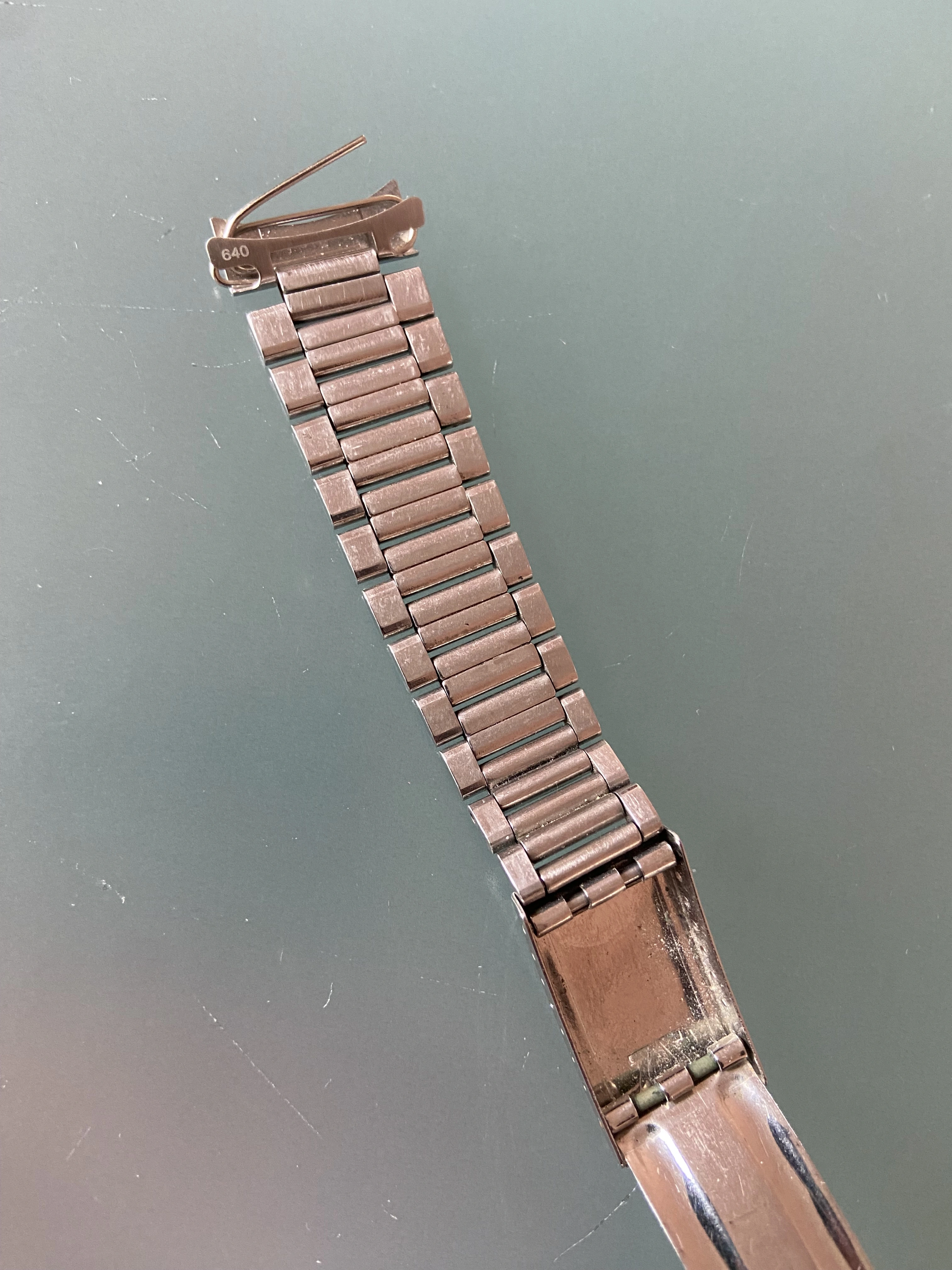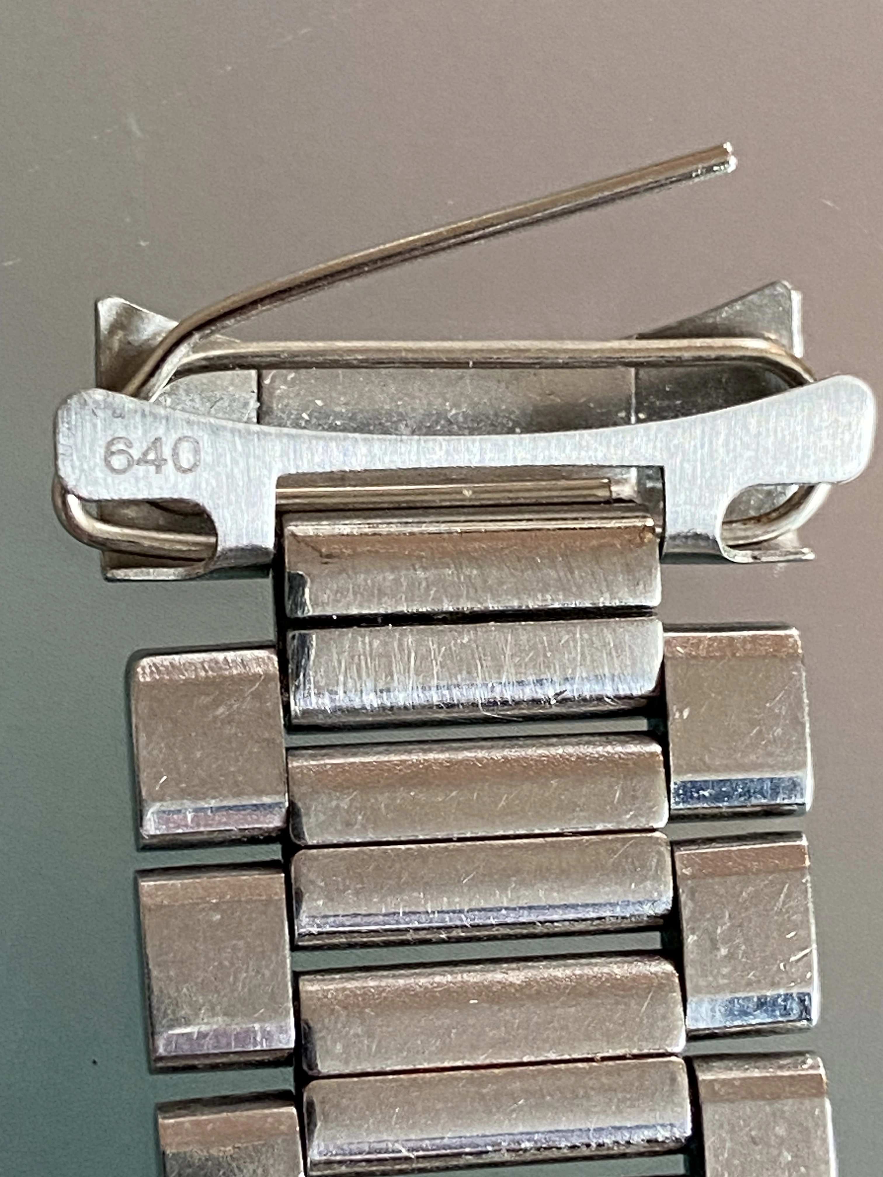 So, it has 20mm 640 end links, it's ready to wear, it's long with extra links, marked 1175 on the clasp with a 1/71 date code, good looking .... did I forget anything? LMK if I did.