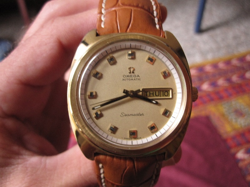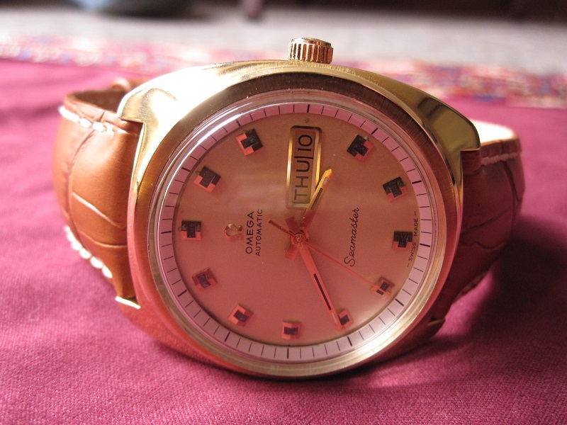 ·I'm downsizing my collection. Up for sale is a vintage early 70's Omega Seamaster cushion case auto with day-date. This watch is in beautiful condition considering it is more than 40 years old. It is a rare gold plated (plaque 40) version of reference 166.0064. The movement is calibre 752, automatic with fast push/pull date. It was serviced by my watchmaker in Italy in May 2014 and is running superbly.