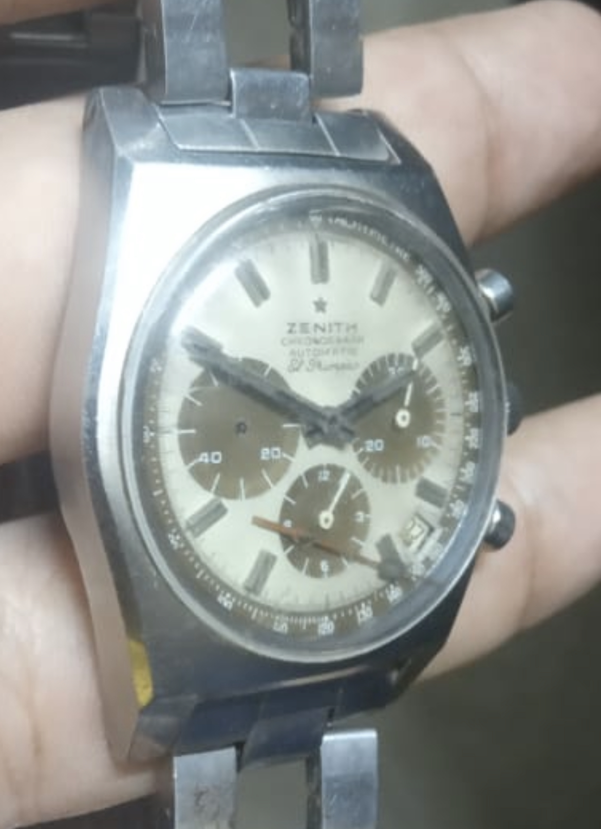 Anyway, one of the pictures show the crown has a "flat" face instead of the Zenith Star, so I am guessing it is some sort of service crown, and the crystal is in poor condition.