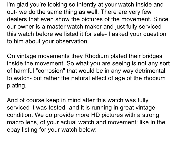 ·Hello everyone im being offered this vintage patek ref 2448 i noticed in the movement picture he supplied that there are some corrosions on the movement i emailed him about it and this was his reply. Does it make sense or should i pass on this watch? Also any inputs in the dial if its original or redialed? Any help would greatly be appreciated. Thank you in advance