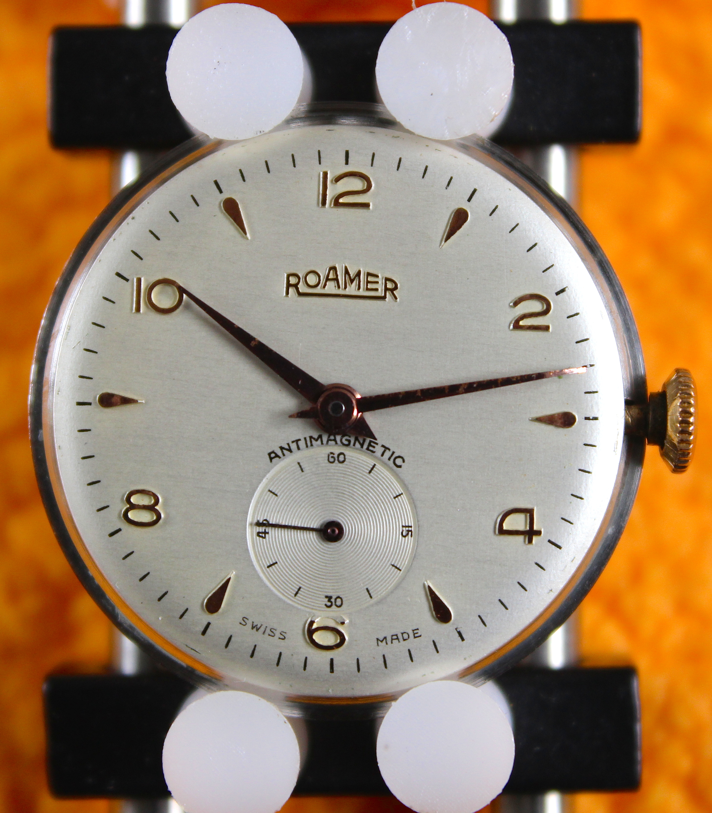 1967-ish 44-jewel cal MS 471 Rotodate, all original down to the dry-rotted band (which I just replaced after a service, retaining the original buckle). The Stingrays are sexy, but this model is a greater watchmaking accomplishment for Roamer/Meyer & Studeli, as it was manufactured entirely in-house... and they jeweled it up to the max.