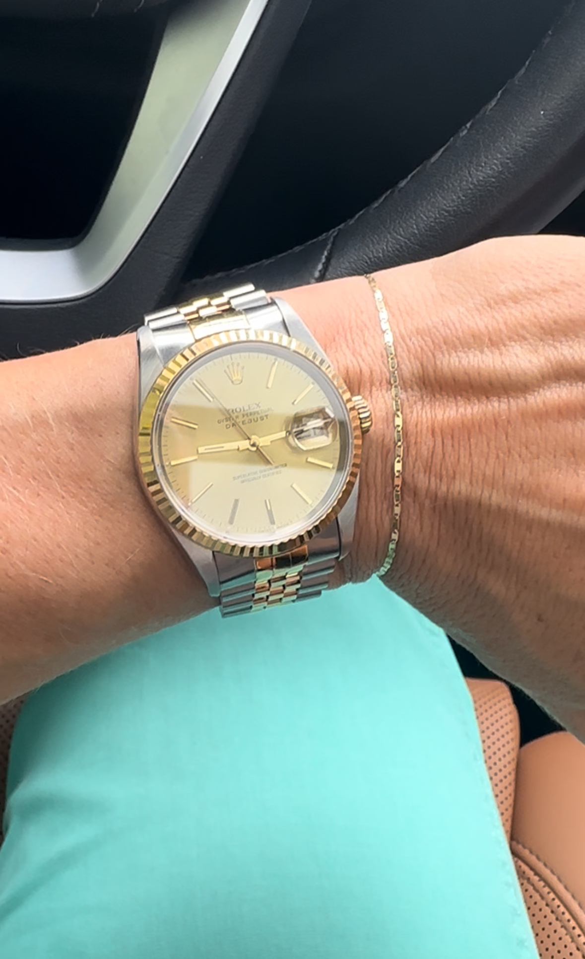 ·A friend of mine has been interested in a 41 mm two tone yellow gold date just and has understandably not been able to source it for years. Was visiting Copenhagen and found a small jeweler who happen to have several vintage, early 90s that were 36 mm but otherwise for the bill.