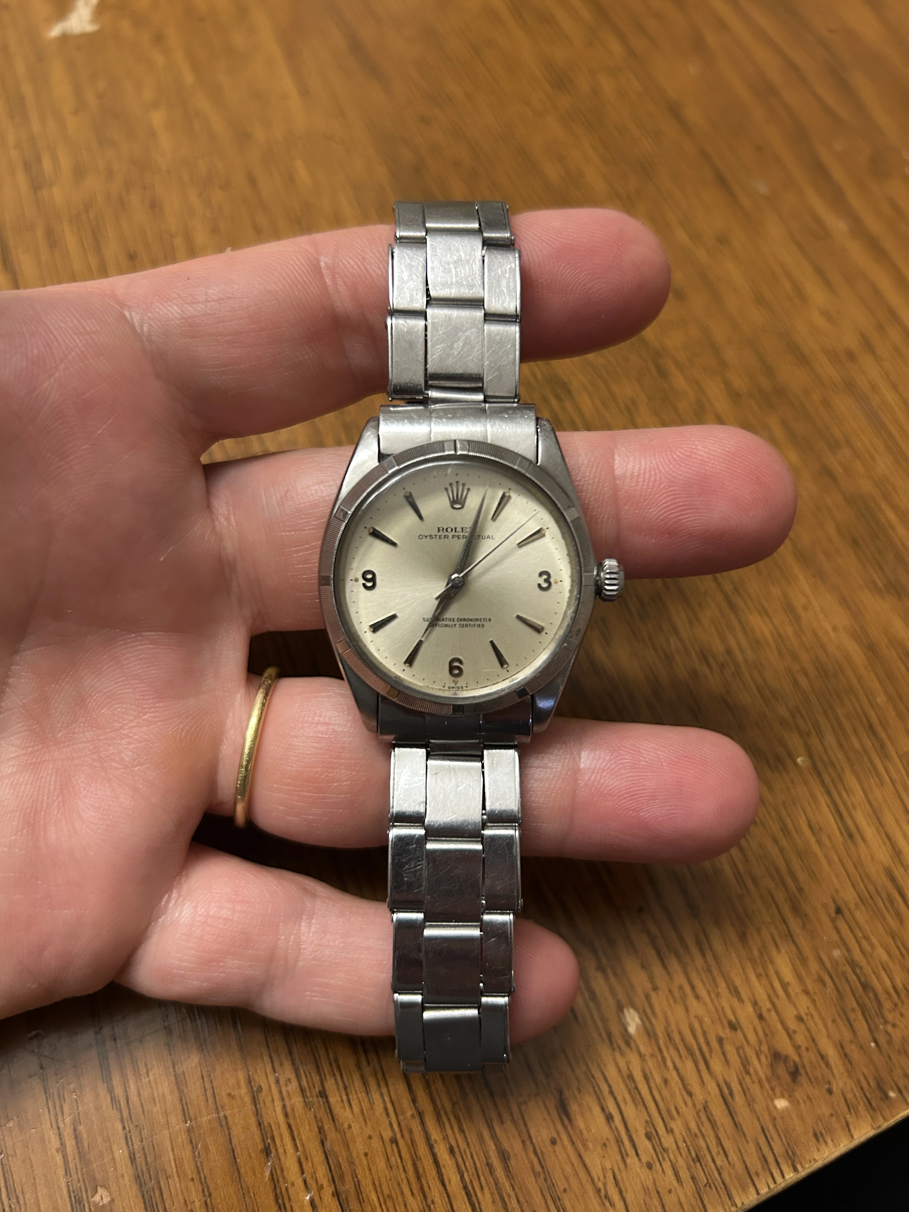 Posts 107 Likes 89 Hal10000 ·Oct 17, 2025 Dan S I assume this is supposed to be a 6635? I can't say I've seen that stamping on the endlinks. I assumed that yes. I could only find a few others online including this "made in England" one. https://marketplace.watchcharts.com...ex-england-19mm-oyster-rivet-bracelet-874-089 I got this bracelet from an English dealer. But it appears to be Swiss made. 🤷🏻