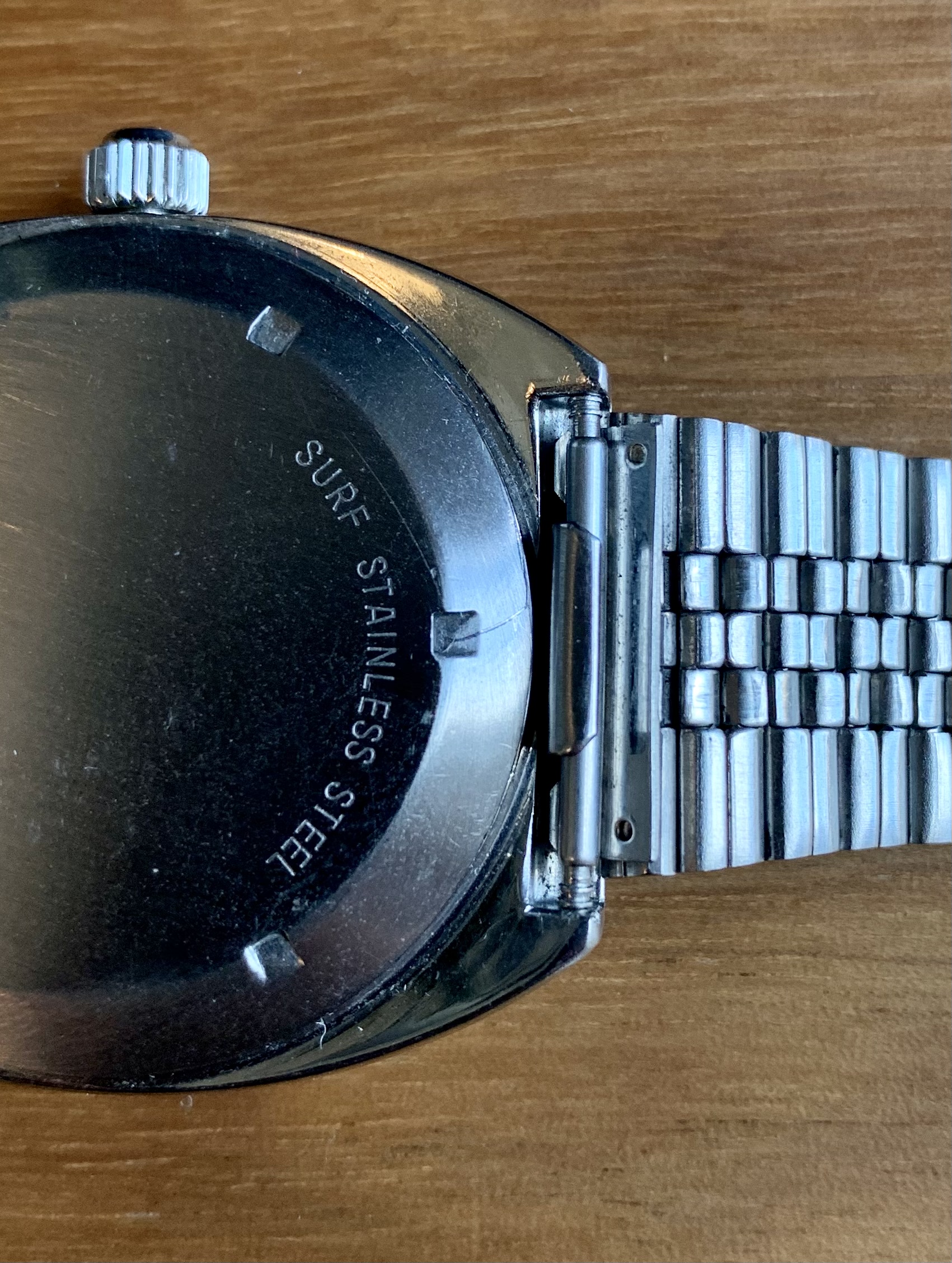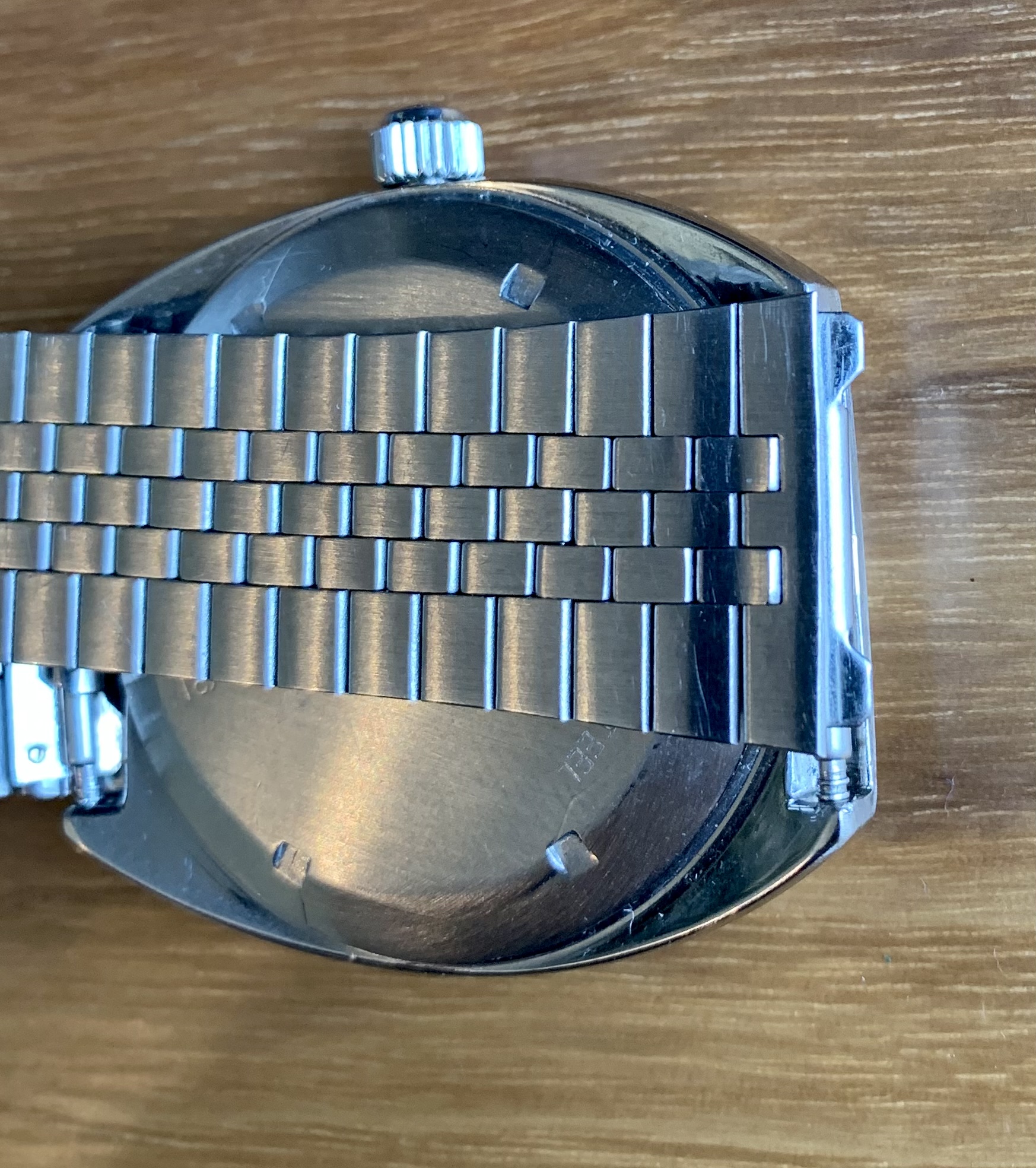 I picked up a vintage Zenith bracelet to try with my 70s Defy Surf. The Defy Surf has 21mm lugs, the bracelet is 20mm at its widest point and 18mm at the ‘tabs’ (not sure of the proper name). I think it looks fine when fitted but with even the slightest pressure when wearing it the tabs flick past the case (see photos).
