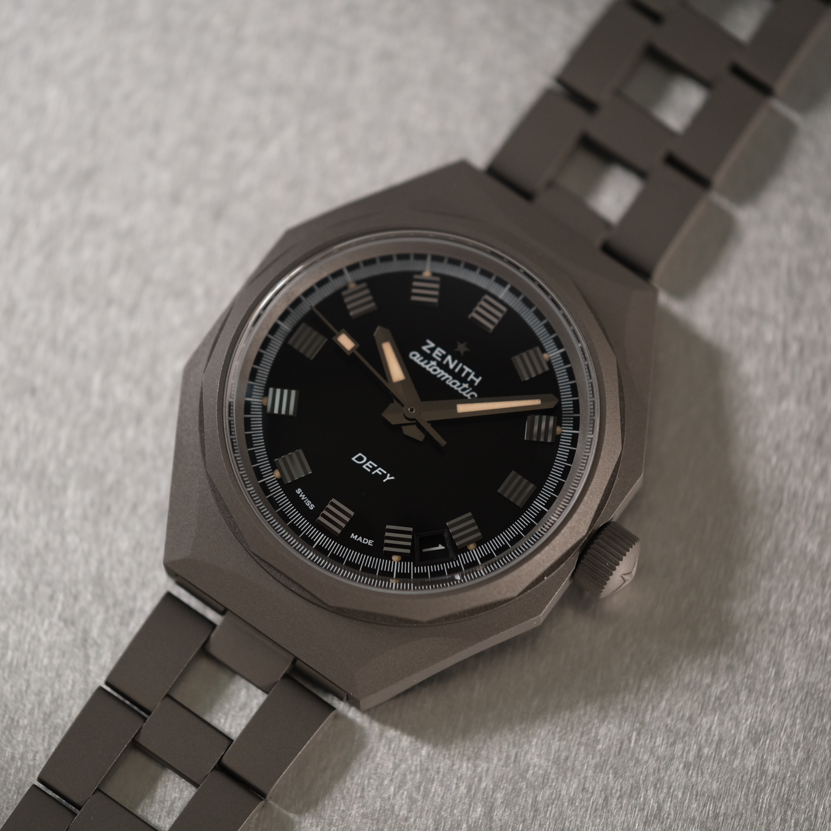 ·Well what can I say? I might be biased as the vintage Zenith Defy has really hit a sweet spot for me in the last couple of years. It's a tool watch and most examples I can enjoy wearing and not worry too much about a ding ruining the look. At the same time I've always fancied titanium watches as they speak to the sci-fi nerd in me and the thoughts of what the future could look like. Imagine my Cheshire grin when at Watches and Wonders Zenith dropped the new Defy Revival Shadow. Picking up my jaw off the floor was no small task. Face reassembled, I strapped on the Defy Revival Shadow and have been admiring it ever since.