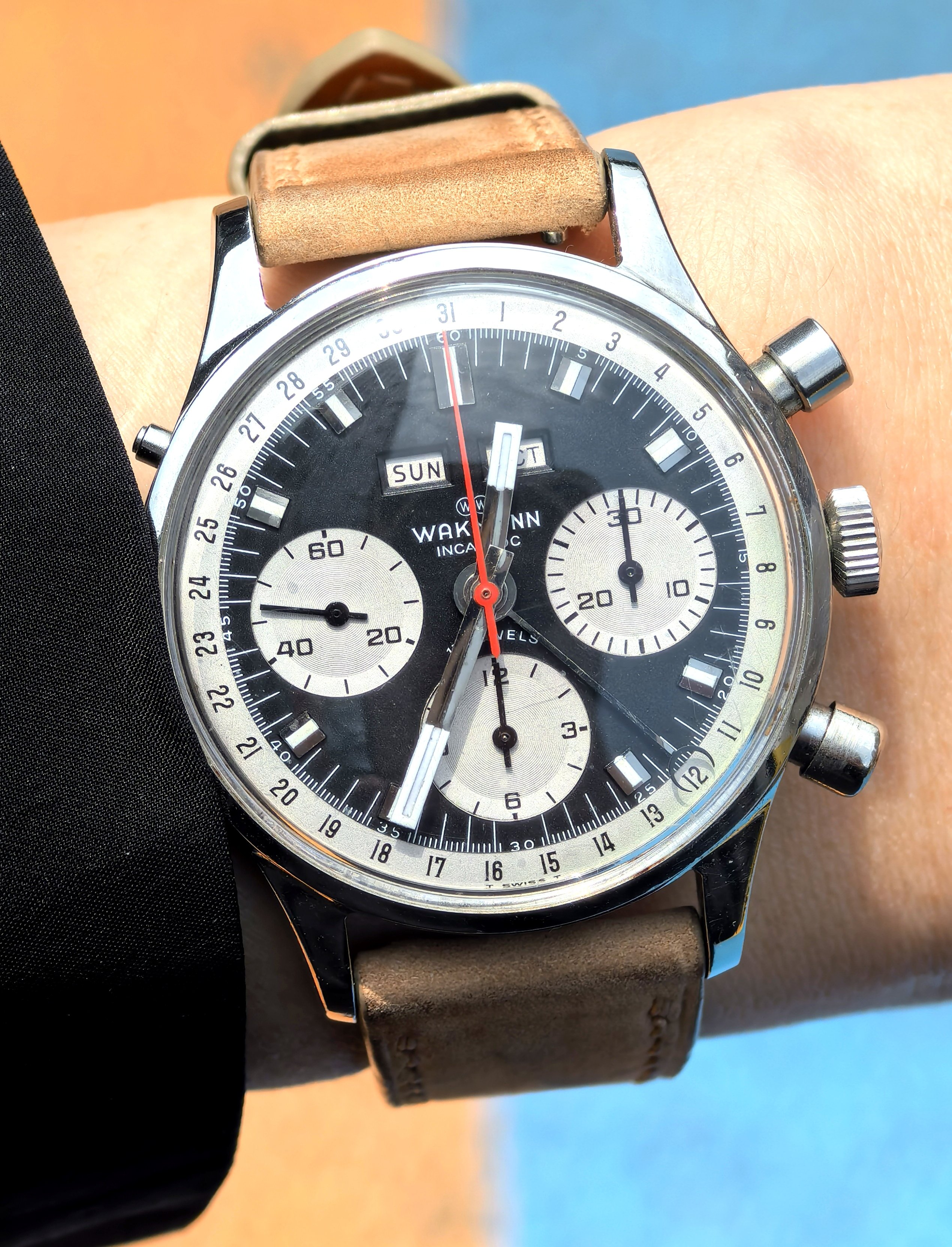 It's in absolutely immaculate condition, save some cracking of the lume on the minute hand. Love the black lines on the minute and hour hands that is not present on Wakmann only reverse pandas. This one is staying in the collection for life!