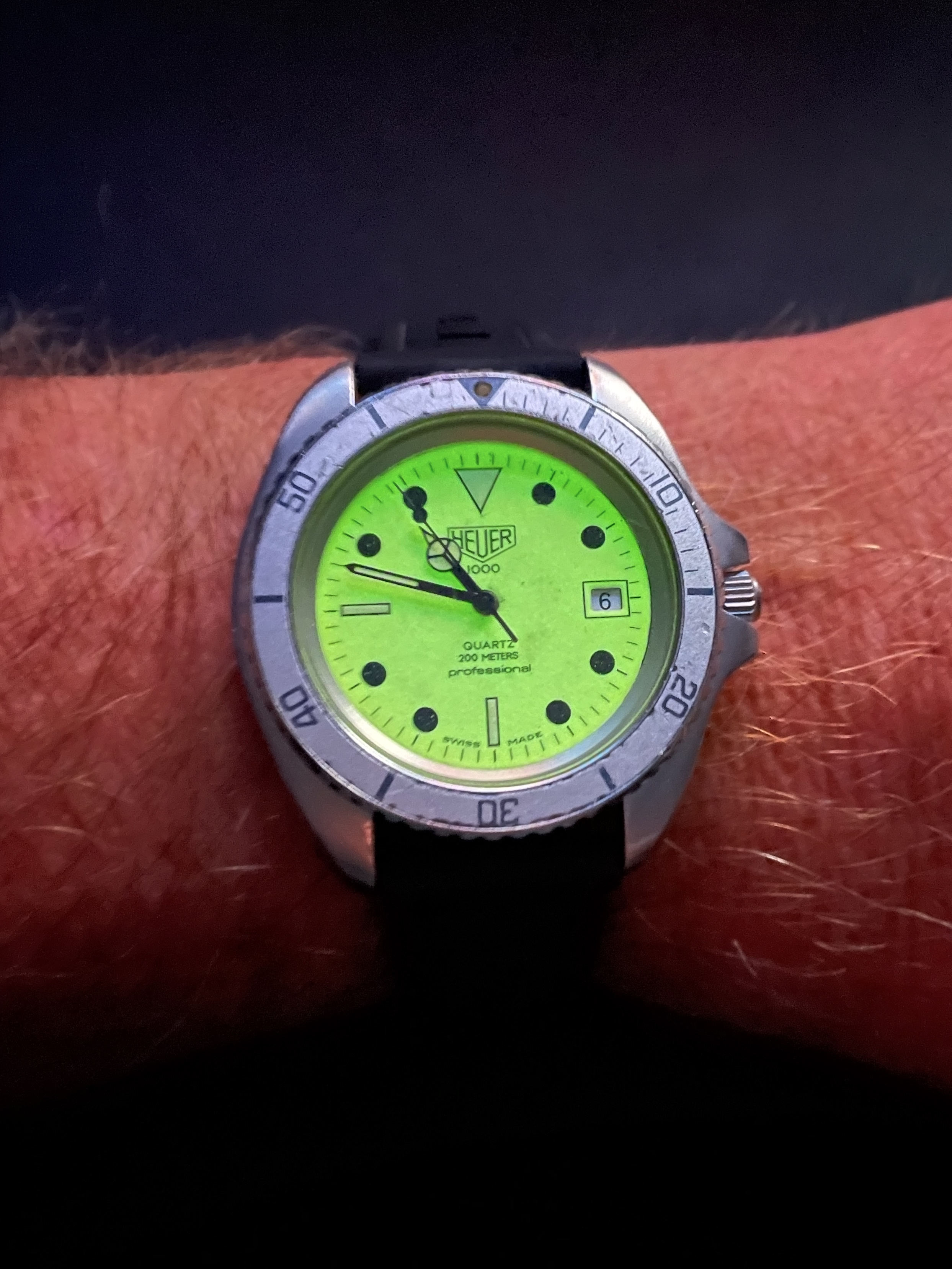 路Hi! I had no idea these existed, I stumbled on this little gem at a Mom and Pop Jewelry store and i love it!. The lady at the counter said its been at their shop for over a year and would take $400 for it. I didn't buy it originally but since i took some pictures i went to the internet and found out a little history on the Night Diver, immediately called the Jewelry store and said i would pick it up in the morning. Glad i went back for it! As far as i can see its not as common as the other 1000s no idea what its worth since i cant find any on ebay.