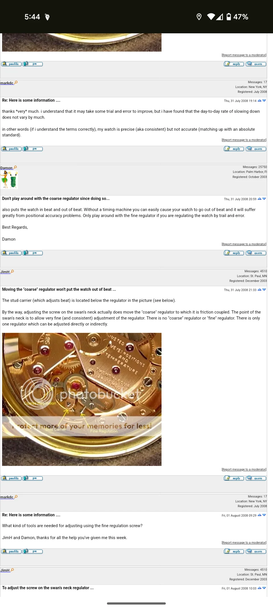 ·Ok. I've been fighting with 2 Omegas (552 and 565) both of which I have posted here. I just cannot seem to get the regulation part down. I can get the Beat Error Rater to near 0.0, but then it has low amp, or the +/- is +200 or -60. I can post a slew of videos and pictures I've taken (when i get home, at work currently), but I'm looking for any tips, or tricks, or videos/posts you all have used to get better at this process. I have slowly gotten a science down for how to speed it up, or slow it down, but there is zero middle ground. I'm about to take the watch apart (again) rewash everything and ensure I did over (or under) lube anything. It's not magnetized and everything is working seamlessly. New balances also, (that cost a pretty penny for 2 new balance and bridge). I very much am open to suggestions and thoughts.