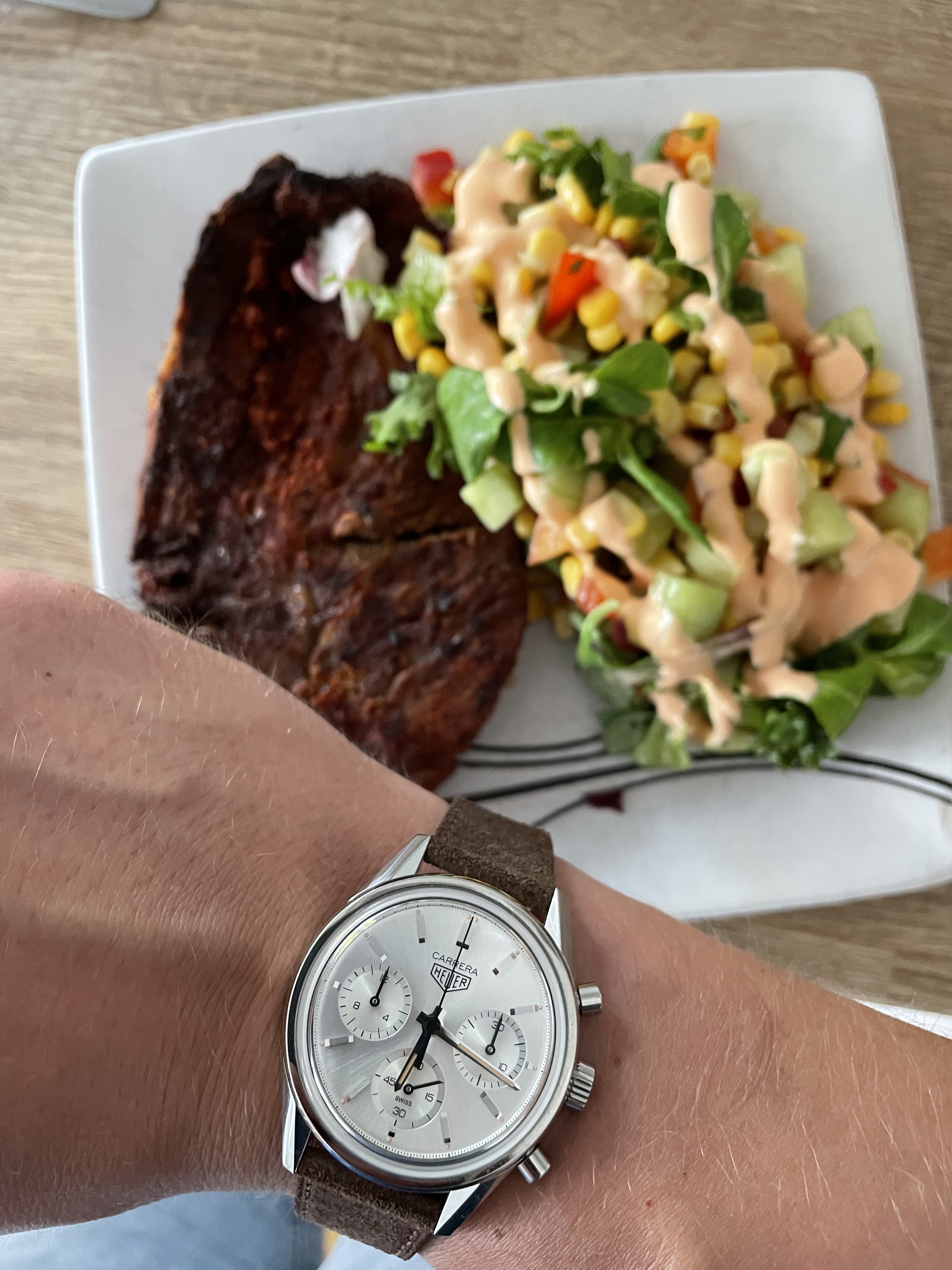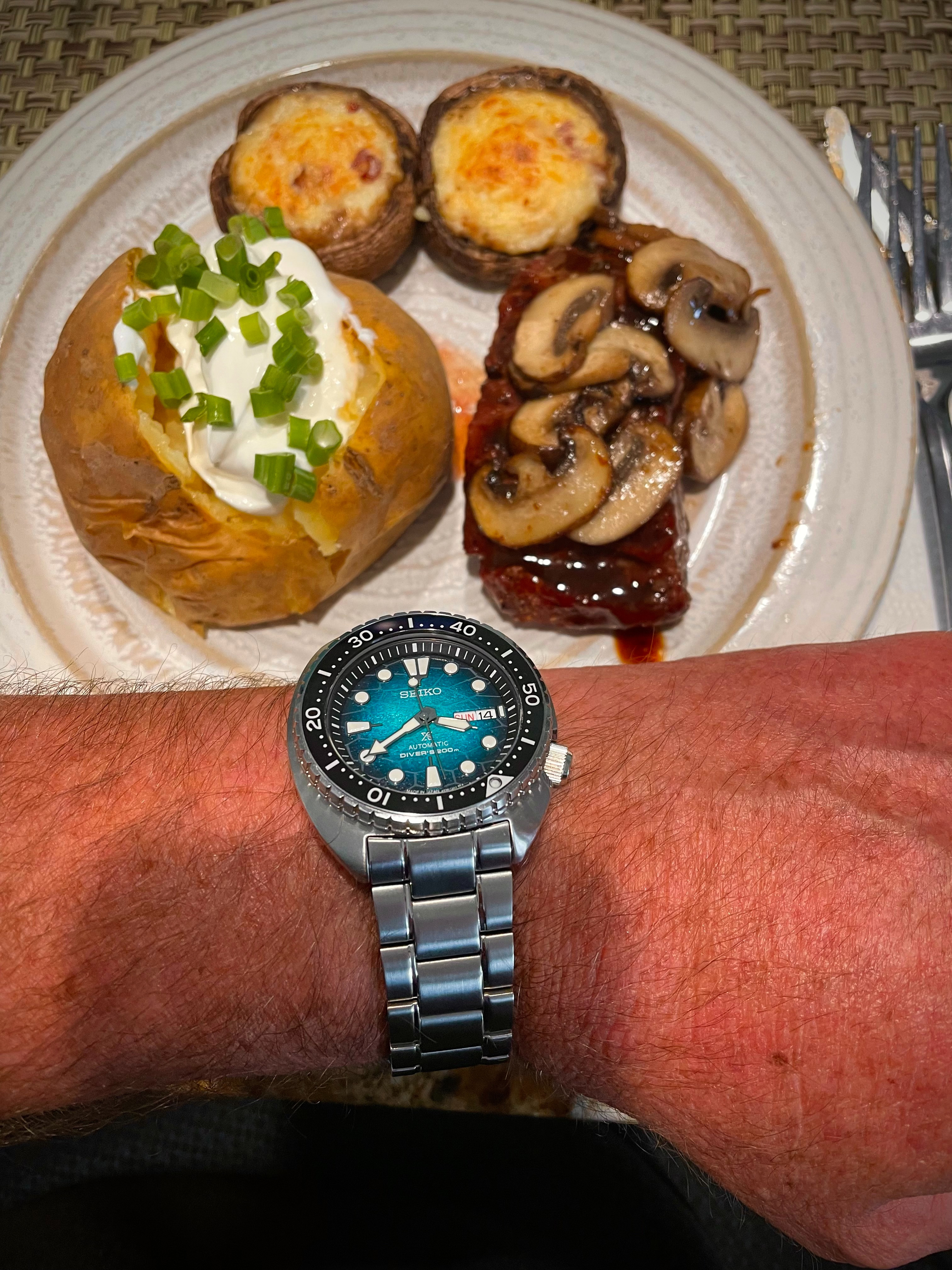 I missed taking the Blackened Redfish dinner wrist shot. Gotta eat right? Pecan cobbler was for dessert.