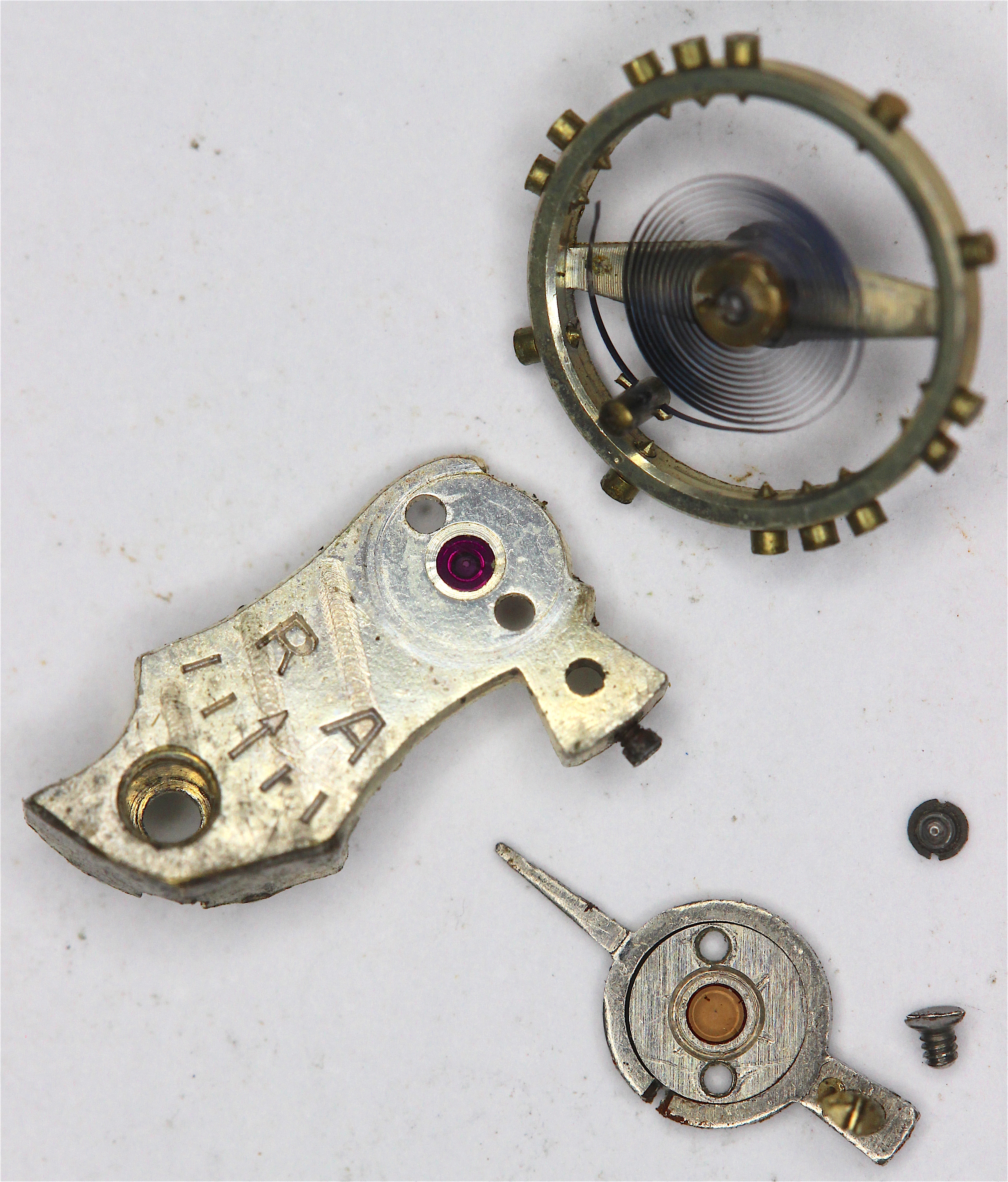 It was water logged and wound as tight as a drum, I could hardly open the click to let it down but managed to strip it for cleaning except for the balance cap jewel. I has the impression that it had never been cleaned by previous watchmakers. Sooooo, I decided to go ahead and remove the regulator and cap jewel, but the screws were underneath the balance cock, so it meant removing the 6.4mm diameter balance to get to the screws.