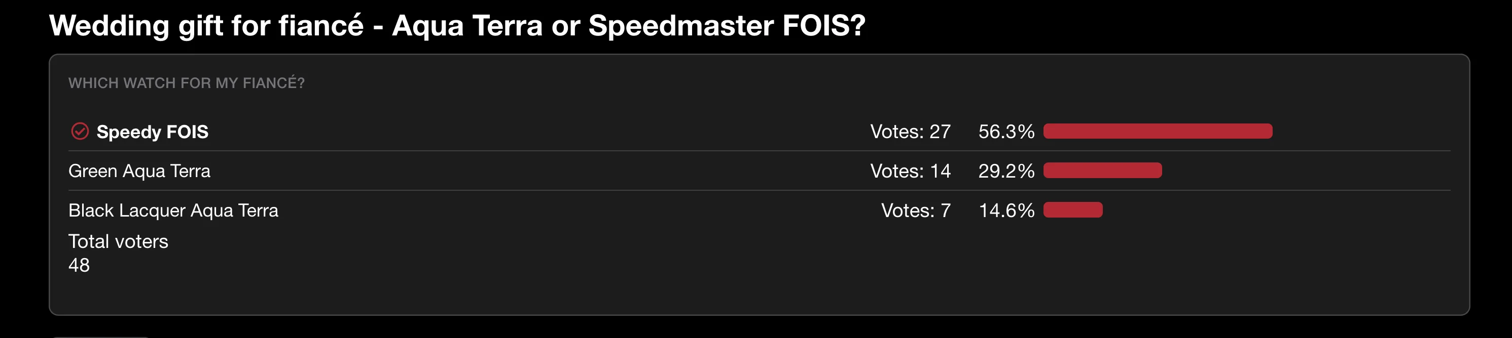 Wedding gift for fiancé - Aqua Terra or Speedmaster FOIS?