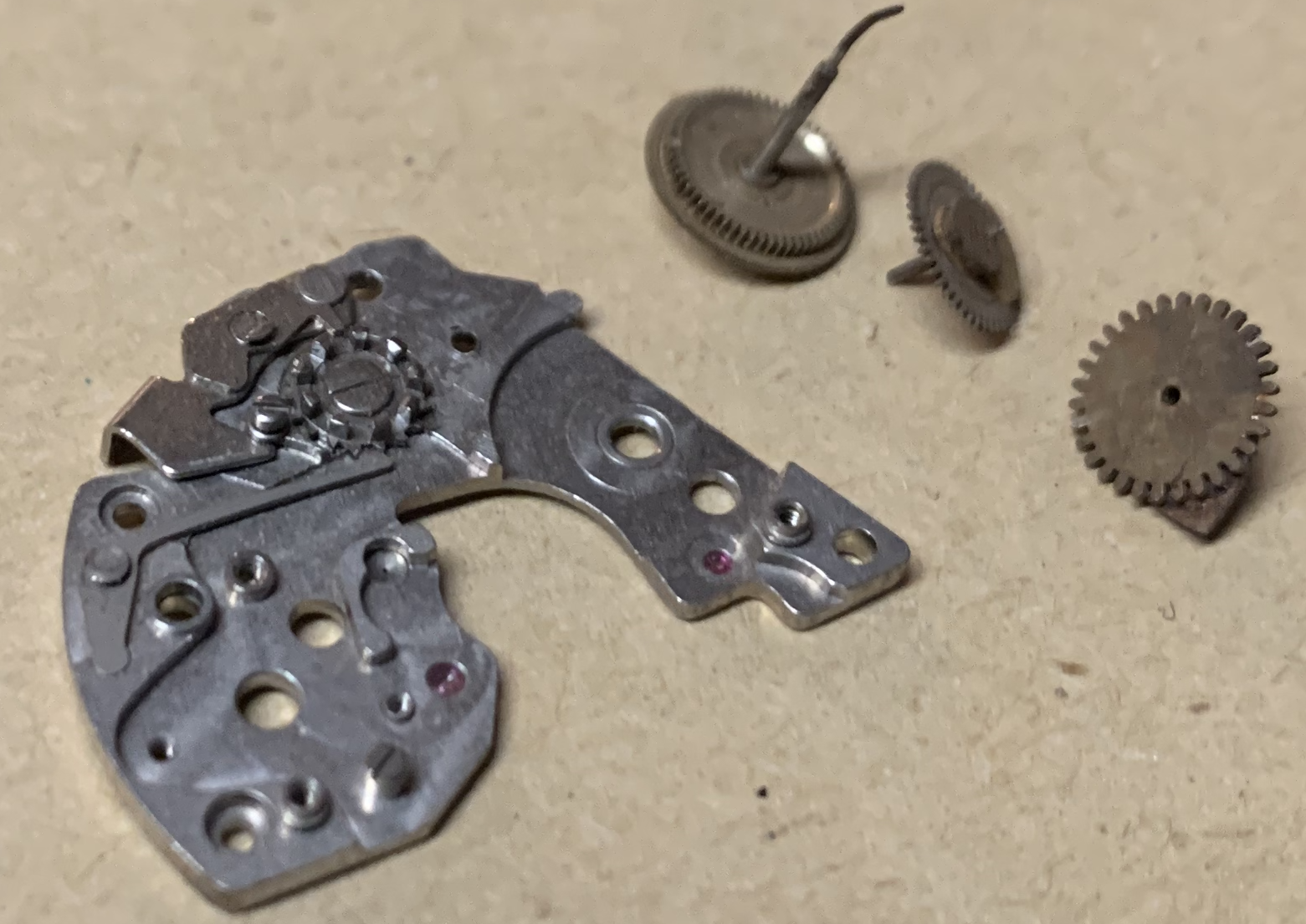 I do collect sports timers (stopwatches) So I suspect the wheels are of that scale. This plate is large about 25mm or so. Looks to be a 3/4 plate so would probably fit into a 12 or 13 Ligne case.