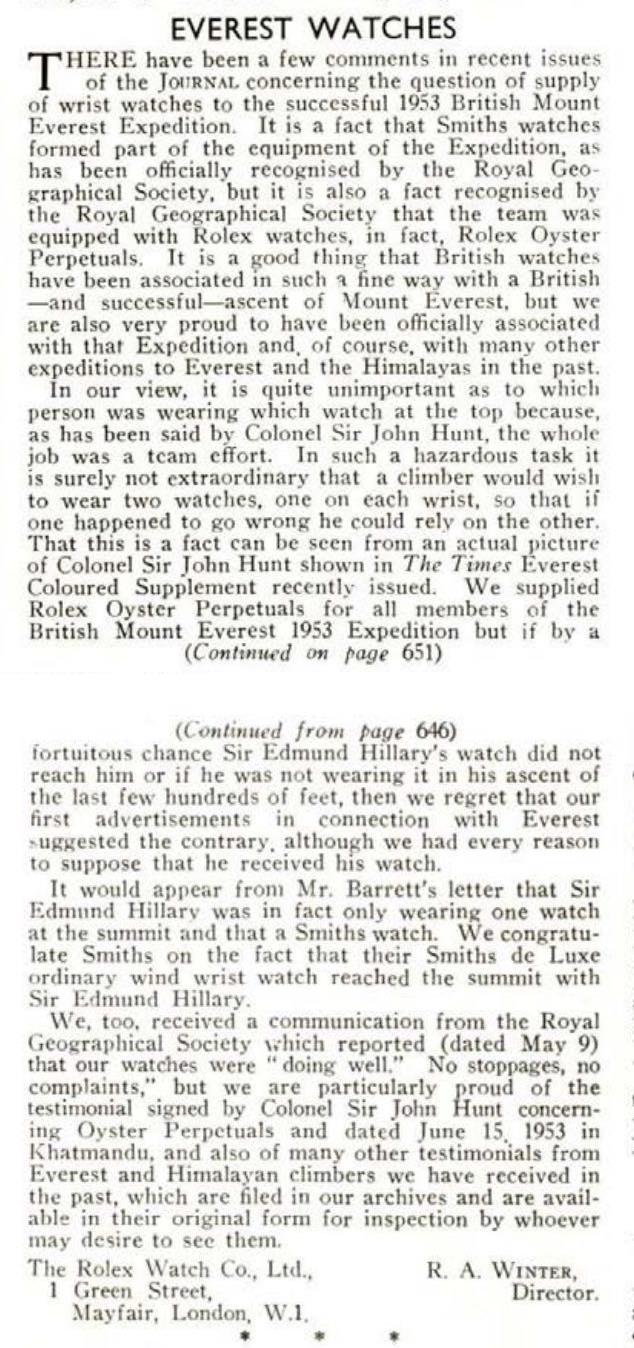 It did not say "an", it said specifically "The" Oyster Perpetual with the picture of the prototype Explorer. This watch did not reach the top. You can conflate everything together, but it did not happen.