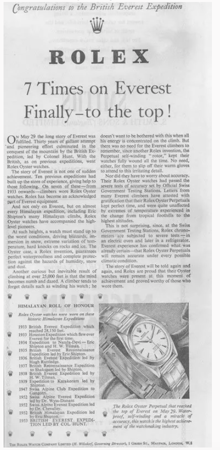 I believe this Rolex advert appeared in the The Times special "Everest" supplement.