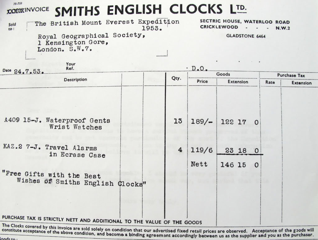 You first posted the invoice and letter from May 20, 1953 for the watches that were supplied to the expedition. This surely can be inferred that you meant the one that reached the top was one of these.