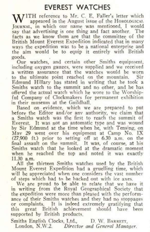 Personally I'm inclined to believe the anecdotal evidence that he revealed on his deathbed that the watch he wore at the summit was in fact a Smith's.