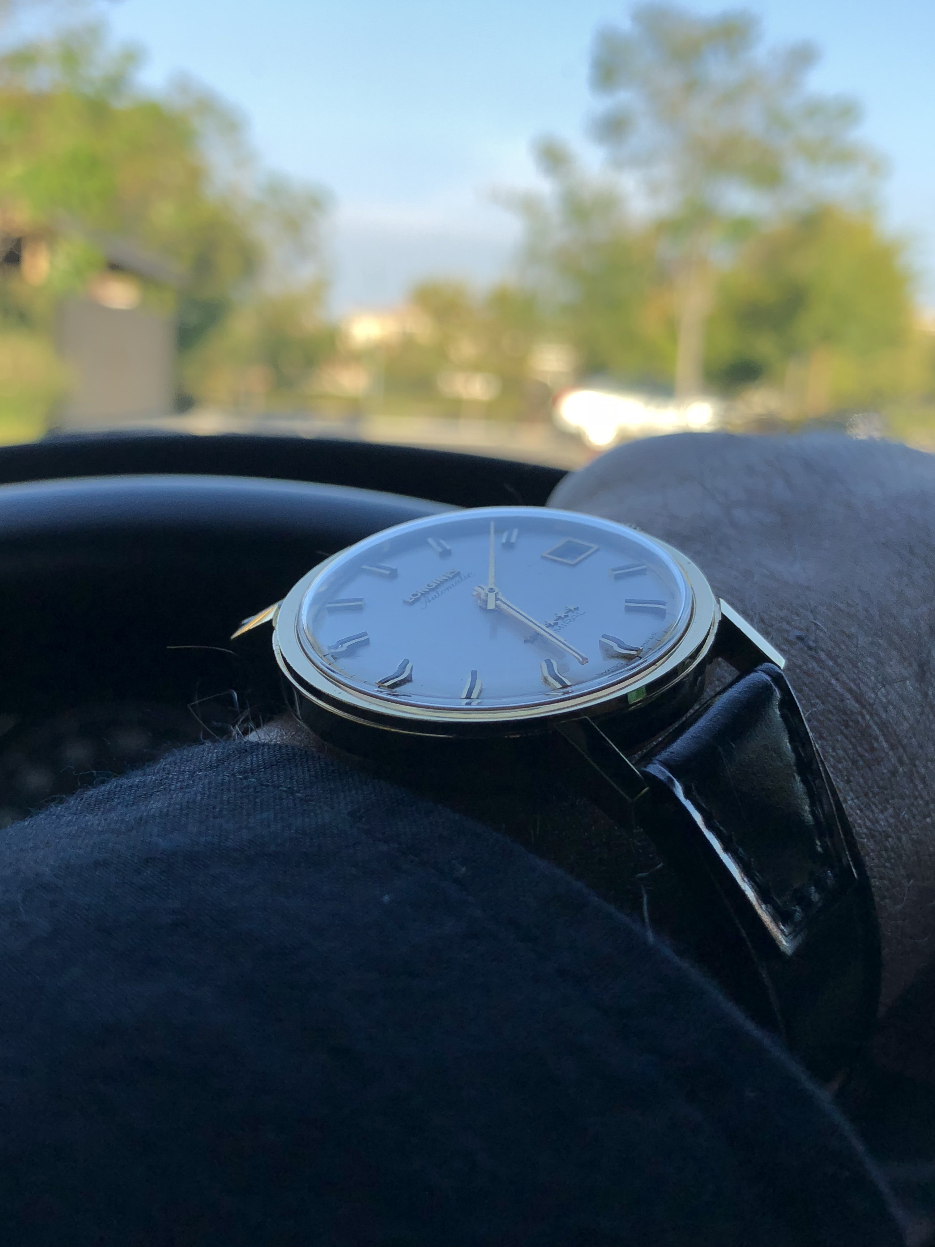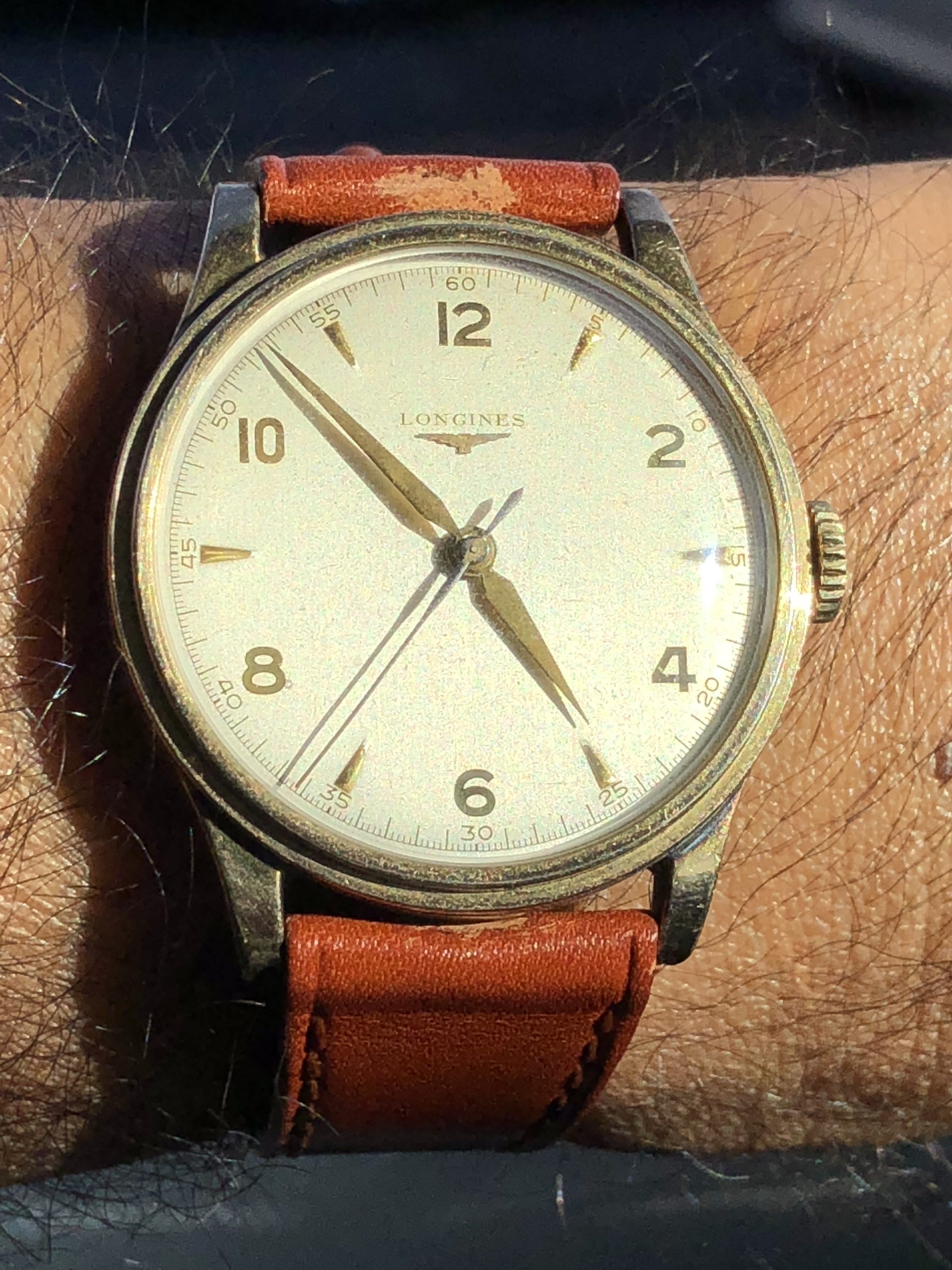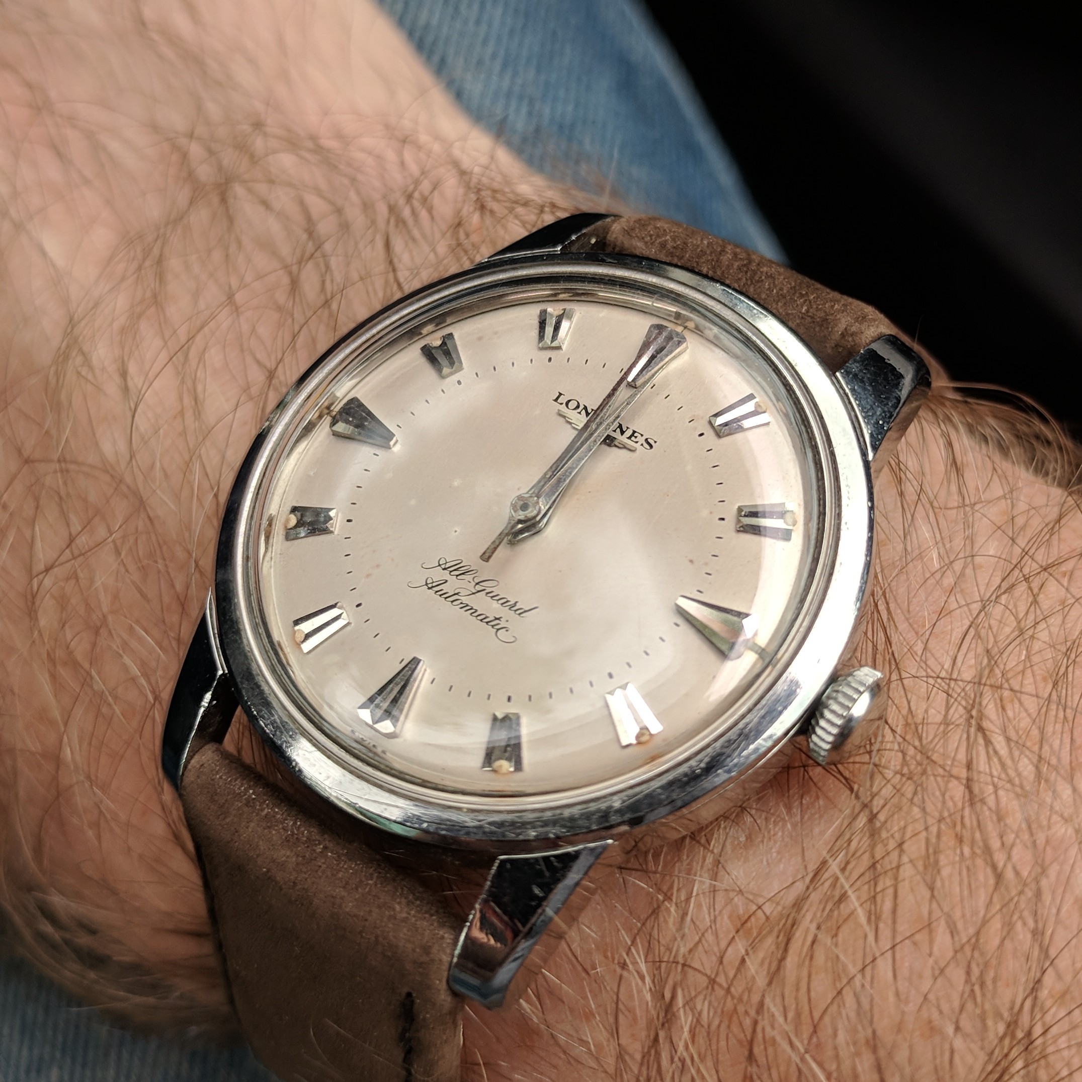 Hello, first proper post from me...here's my 1956 All Guard 9006 bought on here a couple of weeks ago...looking beautiful with a new strap in the September sun!