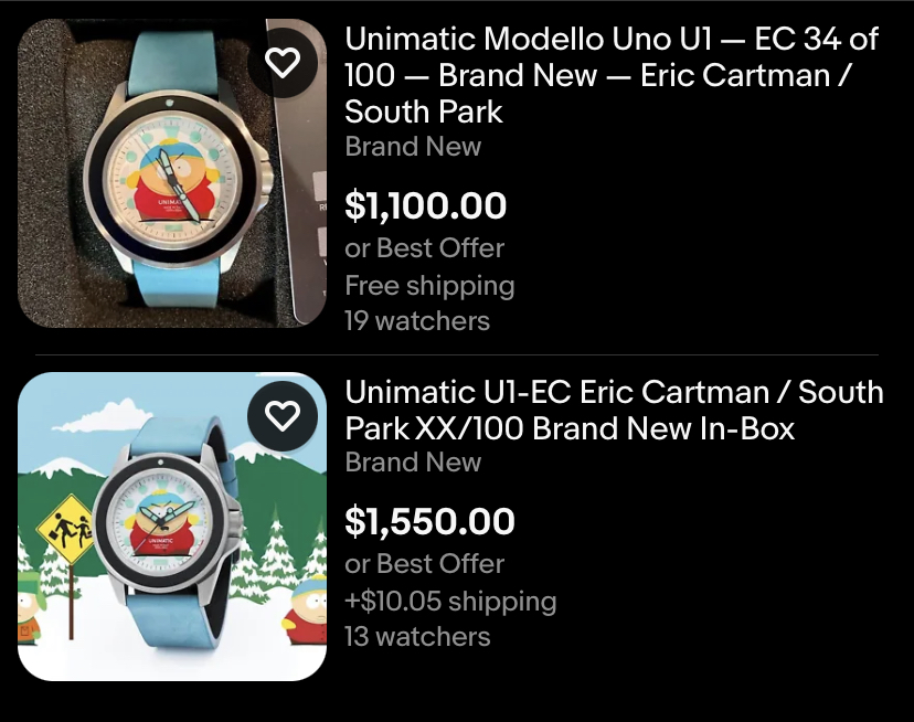 ·Ladies and gentlemen, I bring you the watch you've all been waiting for. Put your Snoopy and Micky Mouse watches aside and make way for a true legend in animated comedy, Eric Cartman! This unique and timeless design will be sure to turn heads for decades to come!