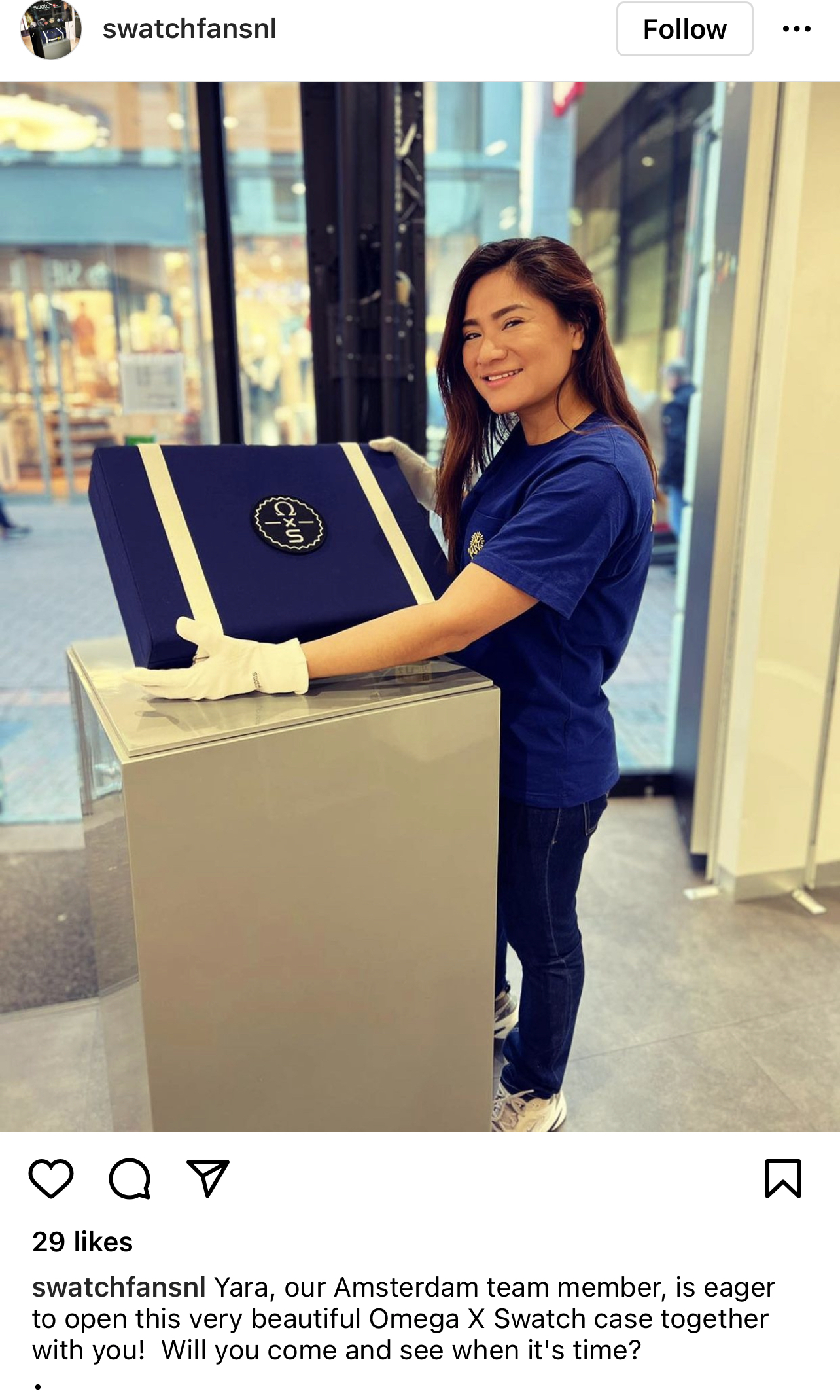 (3) both Swatch and Omega boutiques put out window displays of large cases